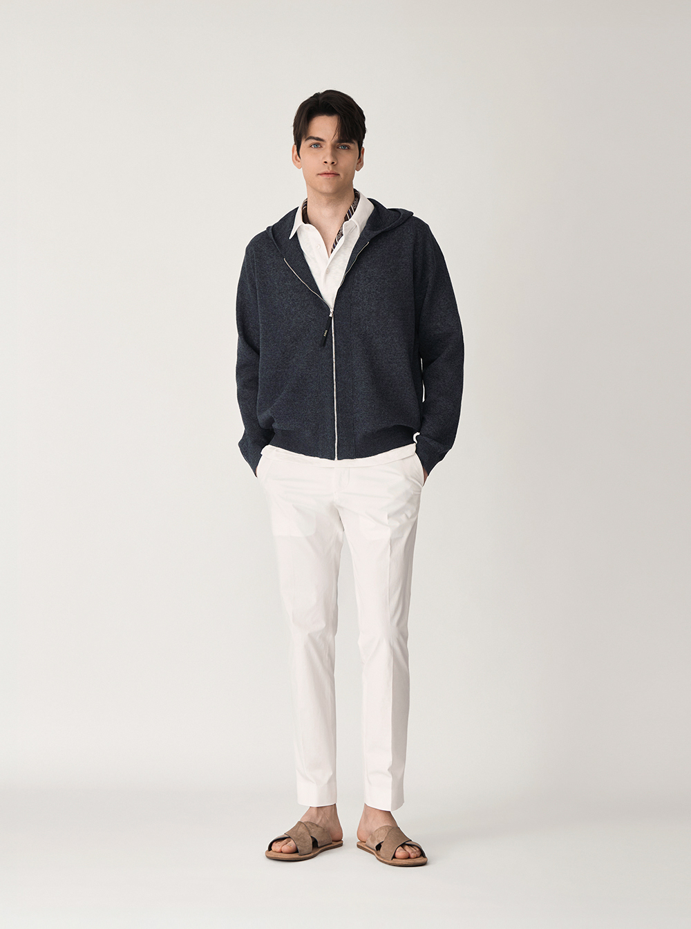 클래식한 소재를 캐주얼하게 풀어낸 디자인이 특징이며,