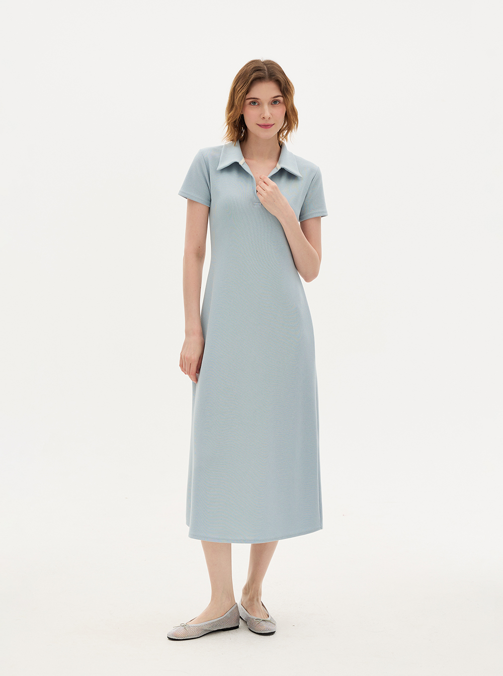 오픈 카라 디자인으로 시원한 넥 라인을 만들어주어