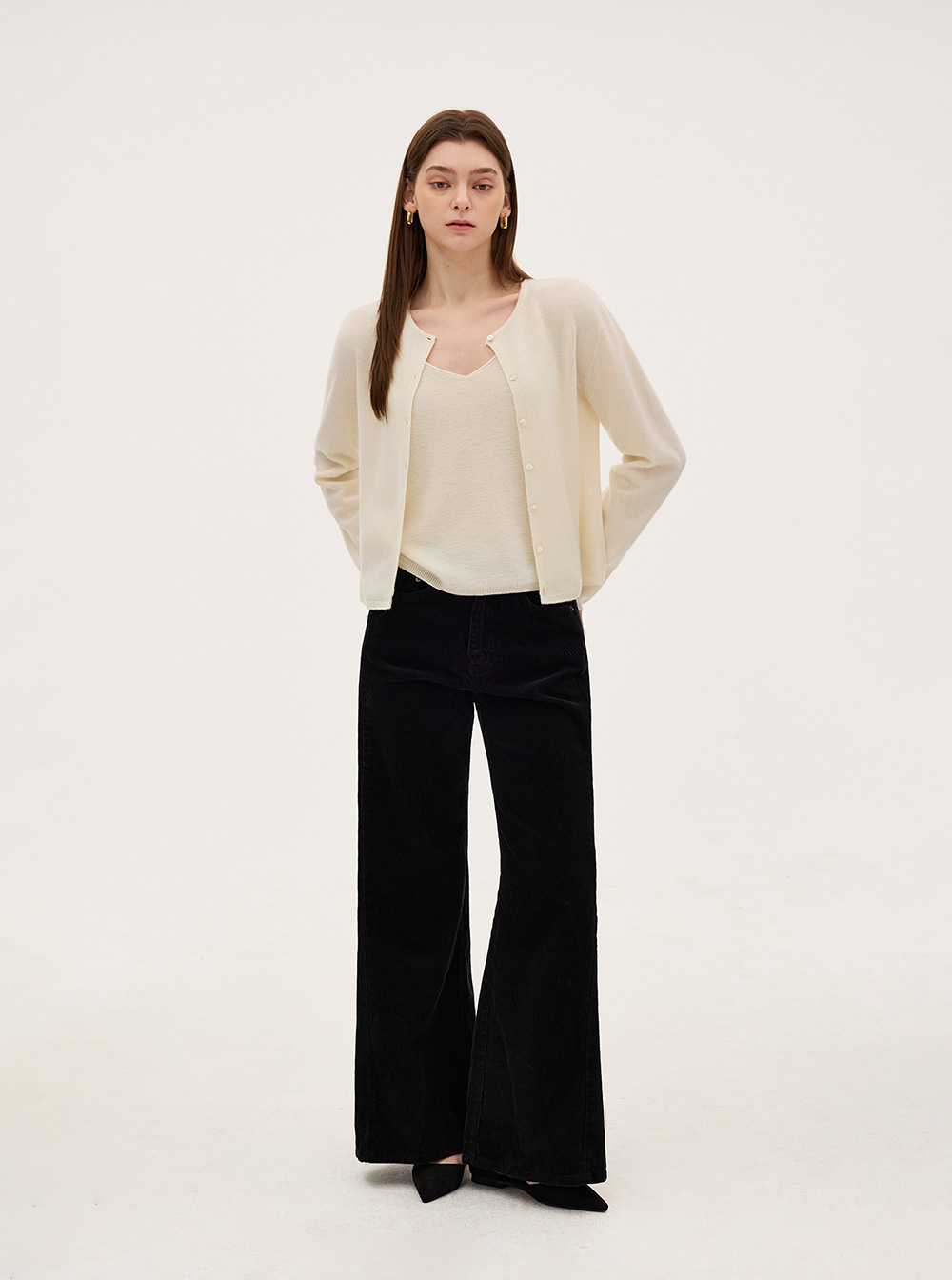 코듀로이 소재의 밴딩 와이드 팬츠입니다.
