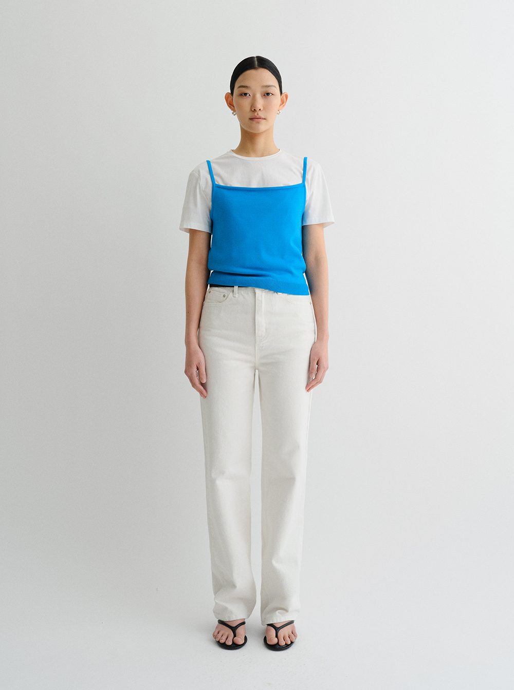 톡톡한 터치감을 자랑하는 스퀘어 넥 슬리브리스입니다.