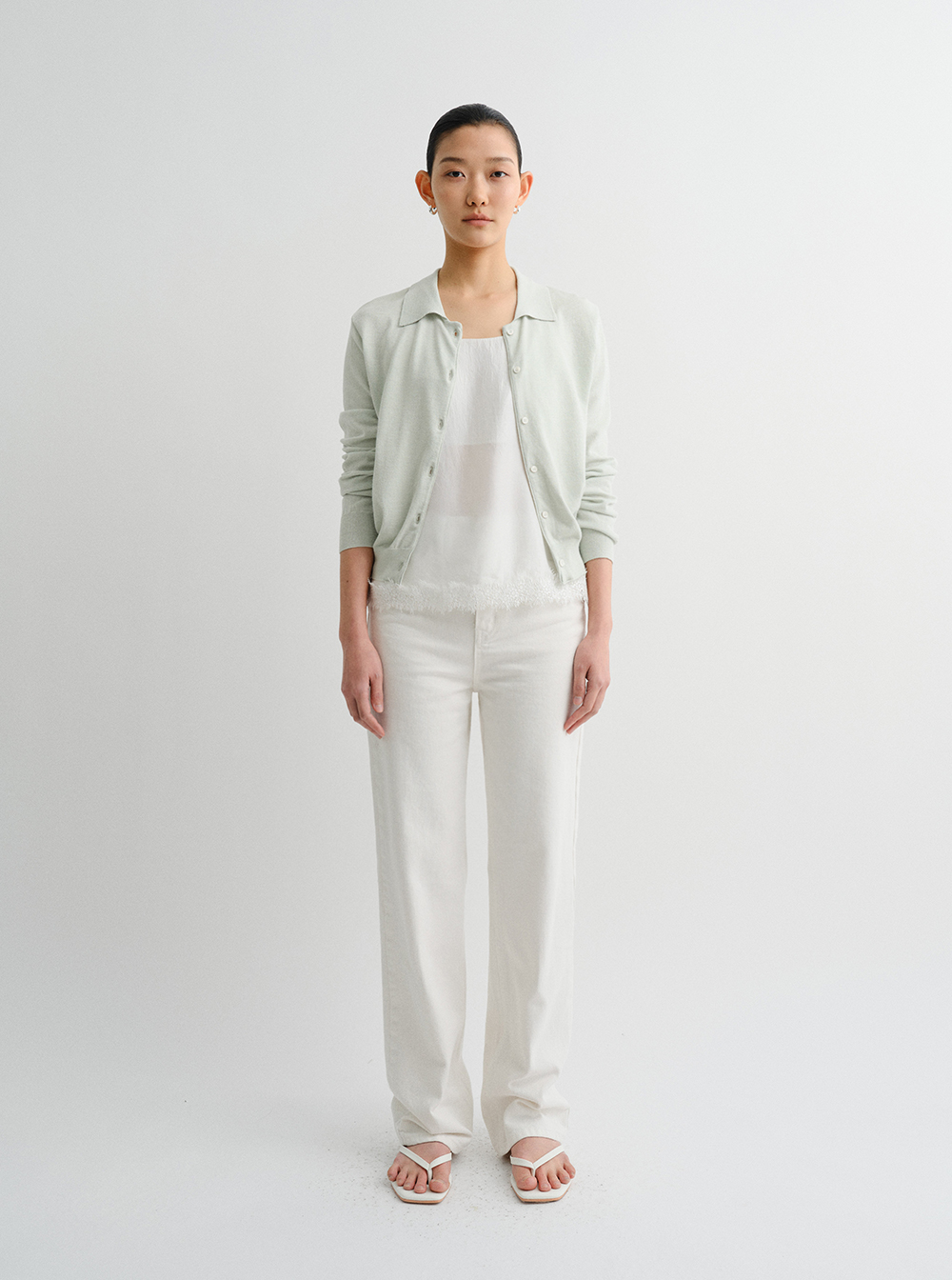 카라 디자인과 클래식한 버튼업 디테일이 특징인