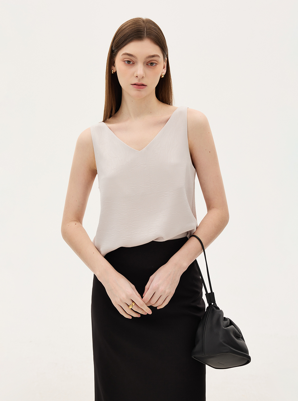 크링클 디테일이 돋보이는 브이넥 나시 블라우스입니다.