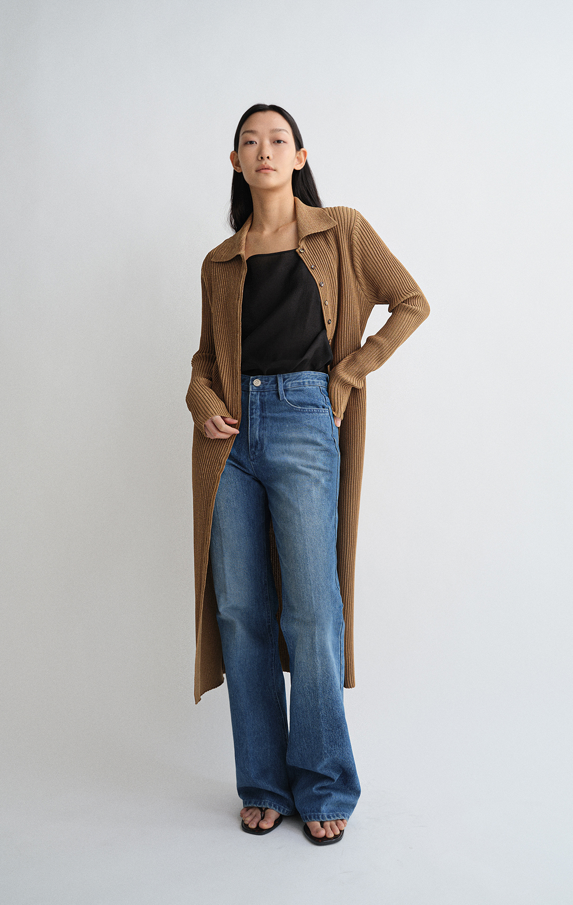 몸을 타고 흐르는 실루엣으로 페미닌한 무드를 연출합니다.