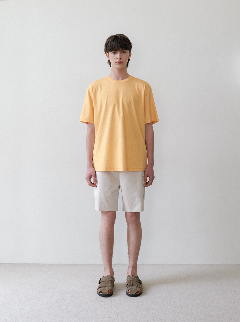 피그먼트 다잉 소재로 제작된 라운드넥 티셔츠입니다.
