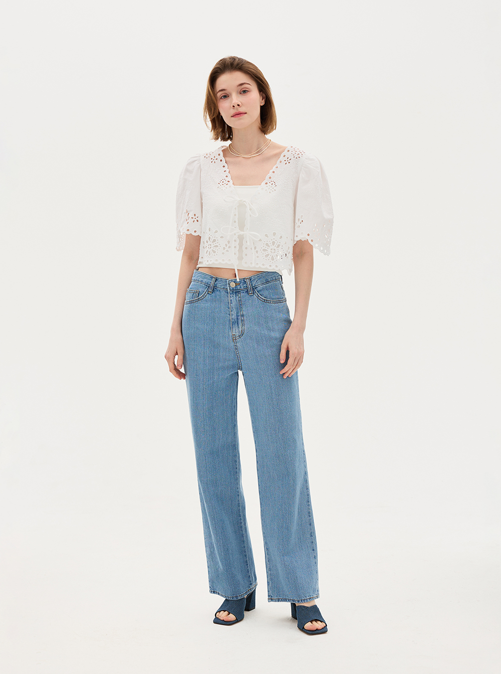 섬세한 펀칭 자수가 포인트인 크롭 기장의 볼레로 자켓입니다.