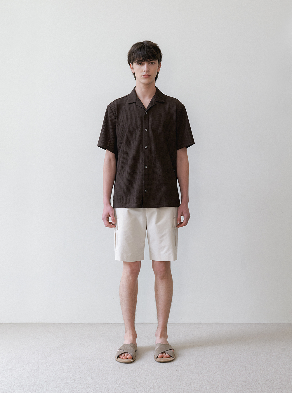 썸머 무드를 한층 강조한 하프 슬리브 셔츠입니다.