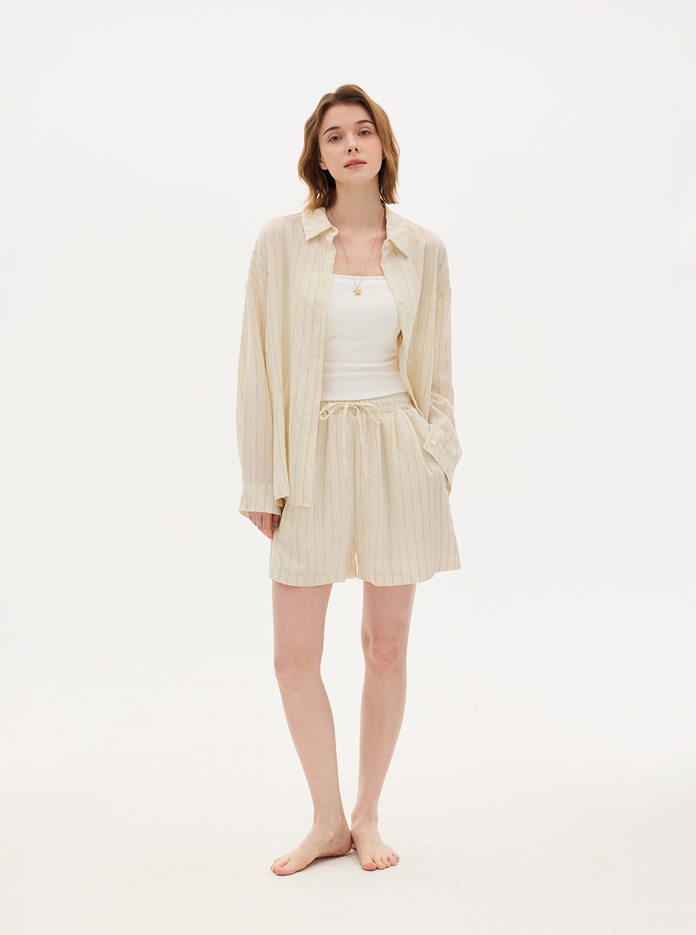 가볍고 통기성이 뛰어난 린넨 블렌드 소재로 제작되어