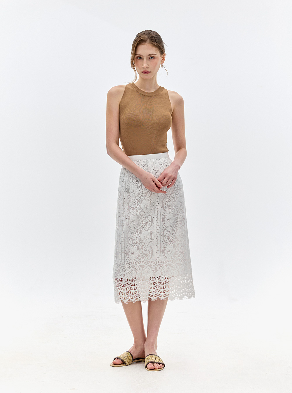 미디 기장으로 단정하면서도 여성스러운 무드를 더해
