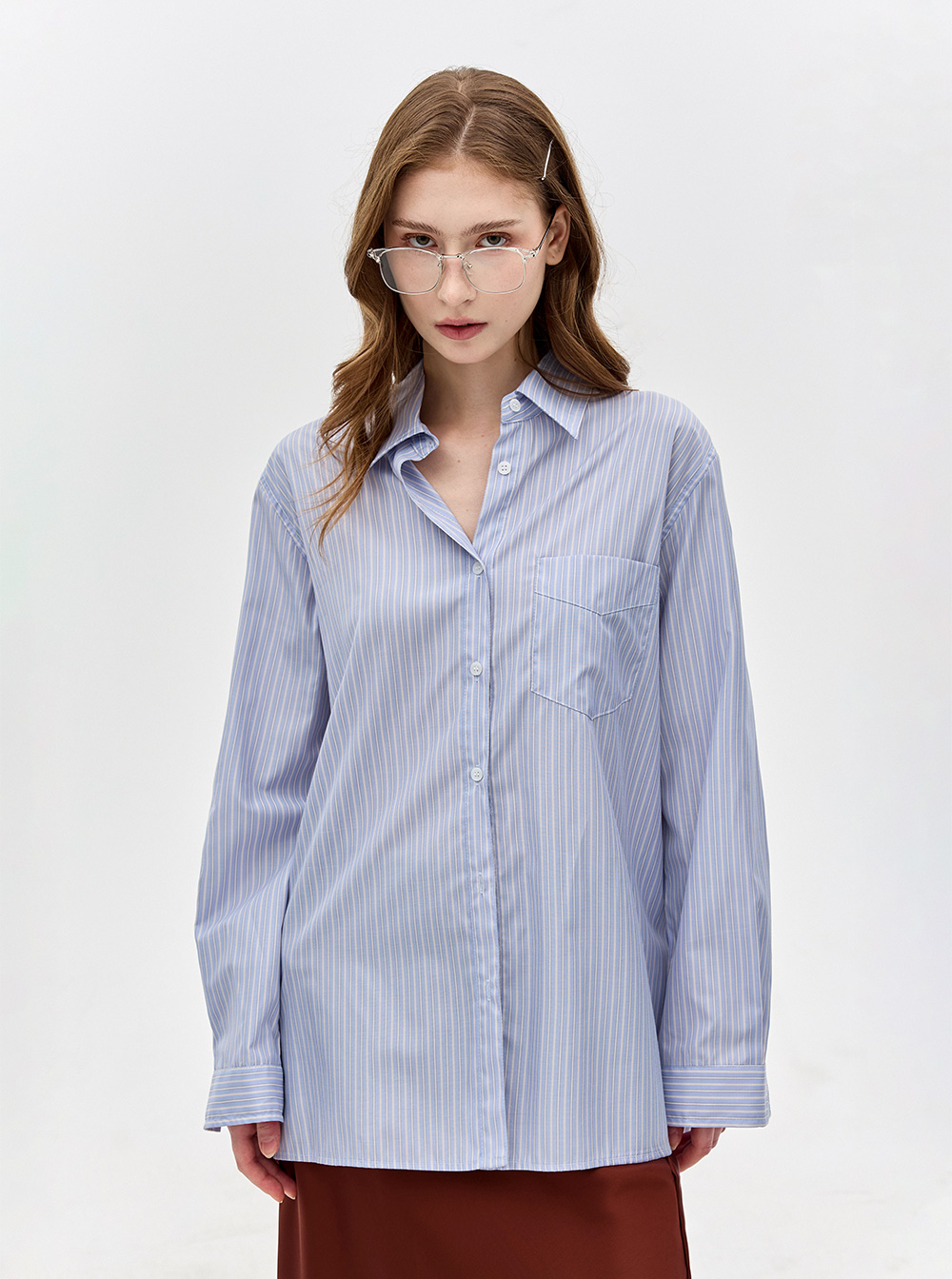 여유 있는 오버핏 실루엣에 잔잔한 스트라이프