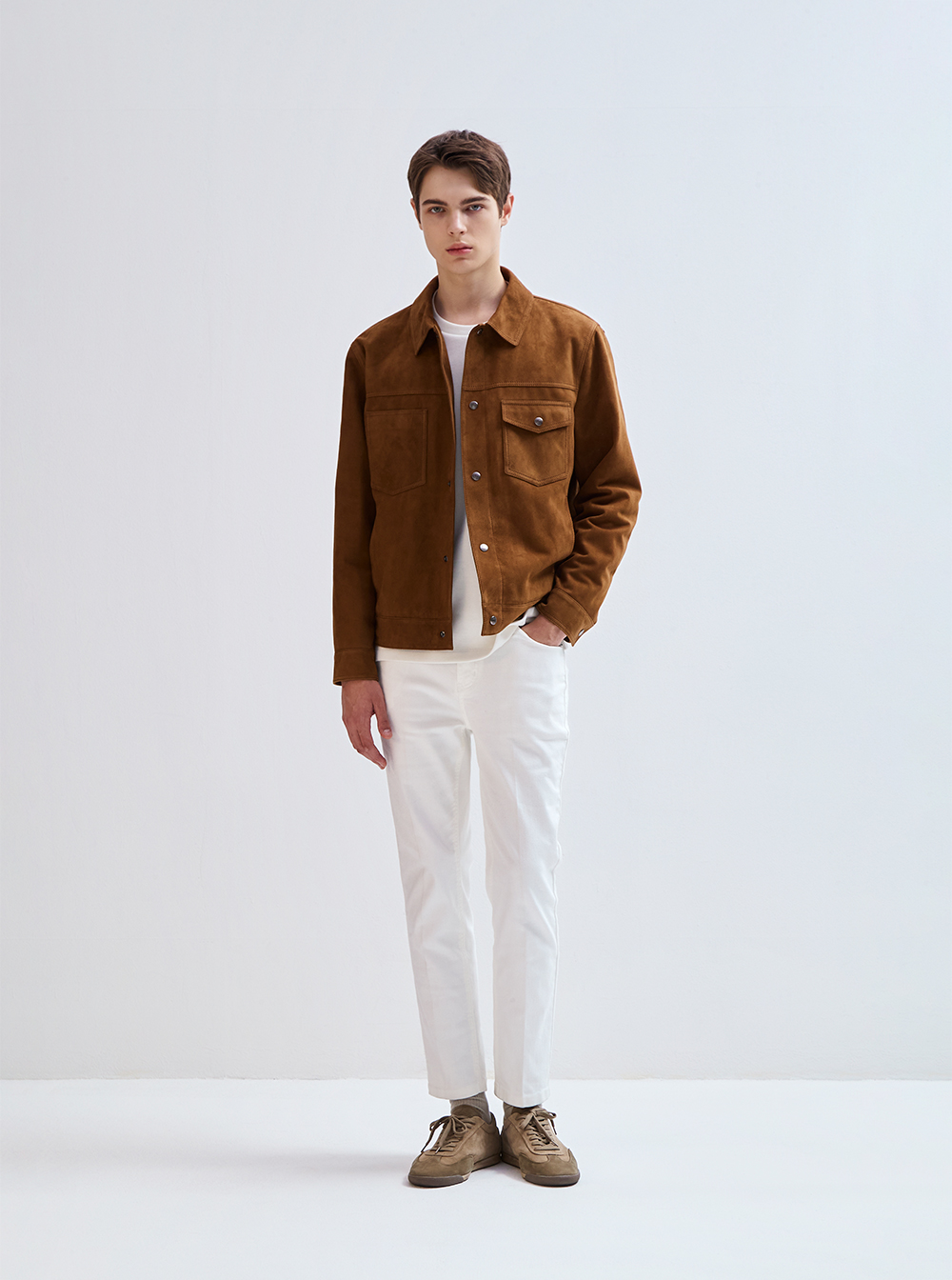 은은한 광택이 돋보이는 트러커 자켓입니다.
