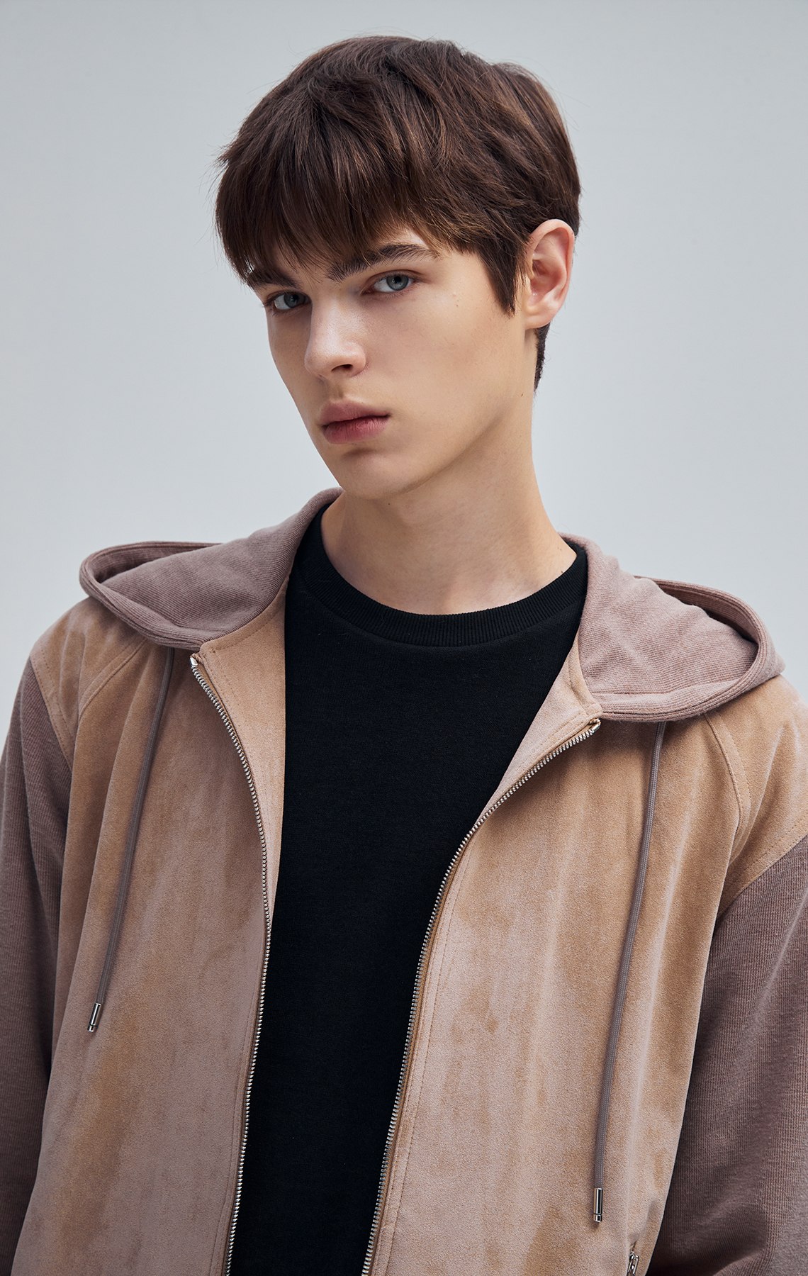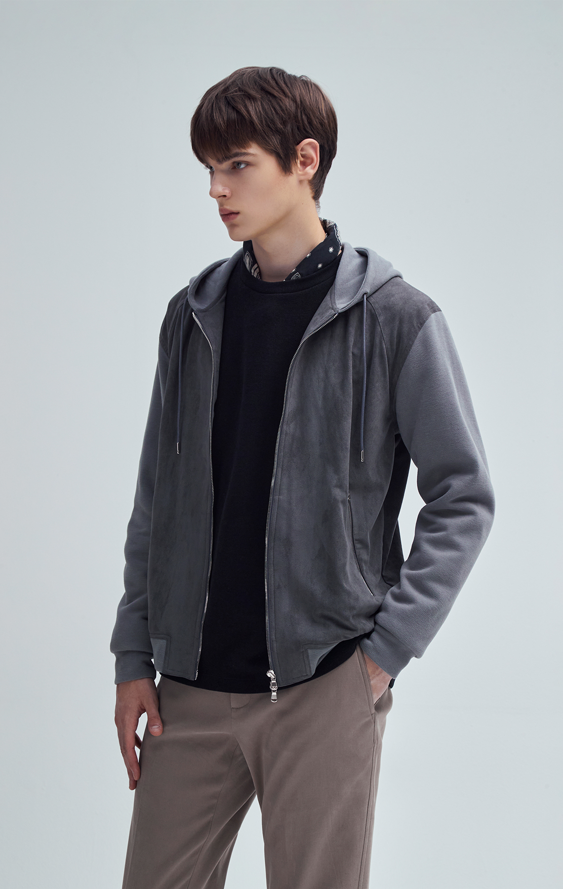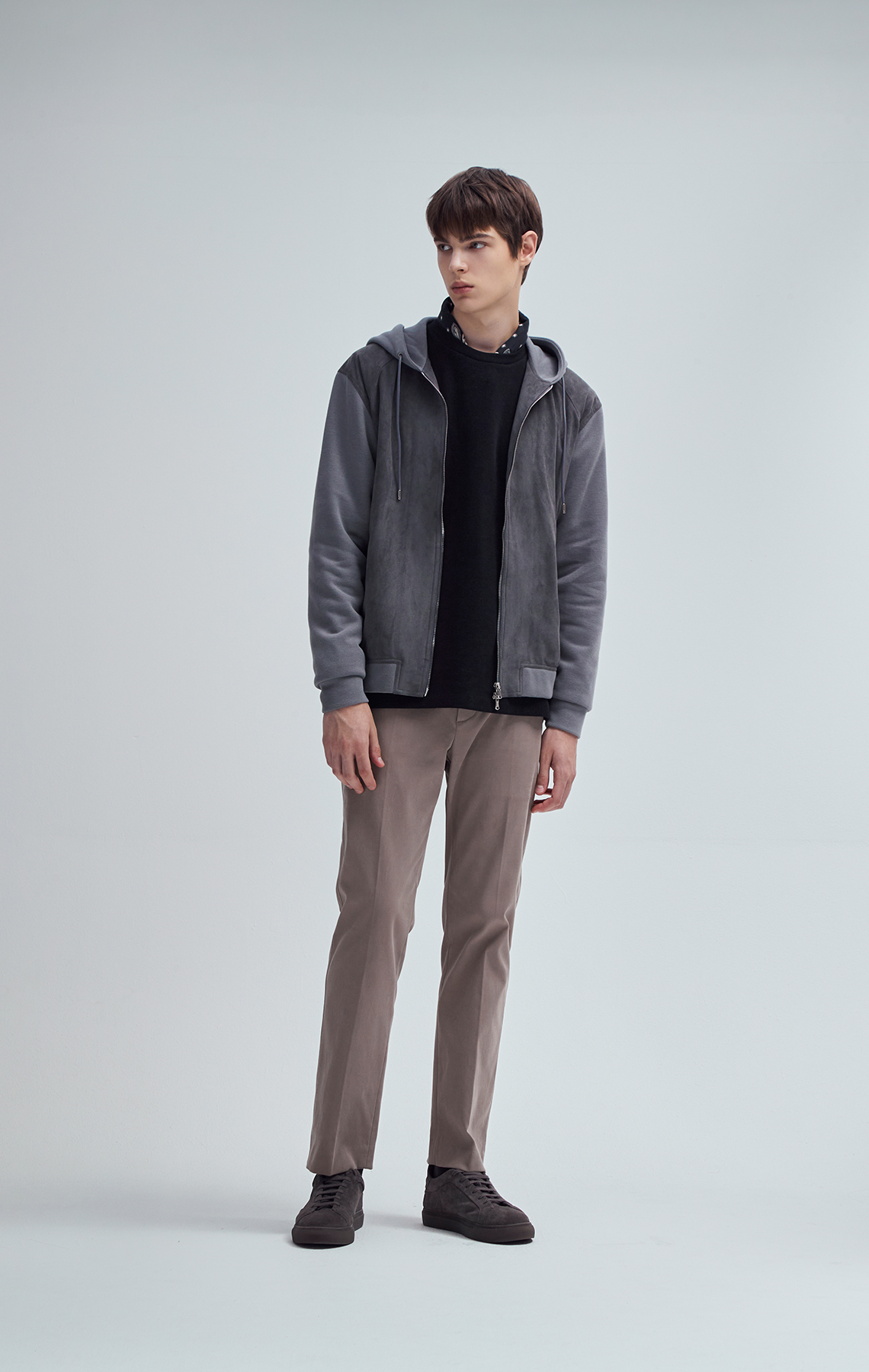 니트를 배색하여 편안한 착용감과 멋스러움을 동시에 구현했습니다.