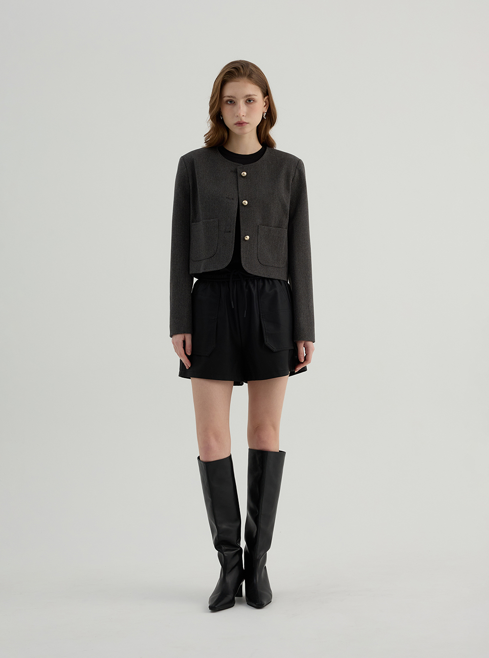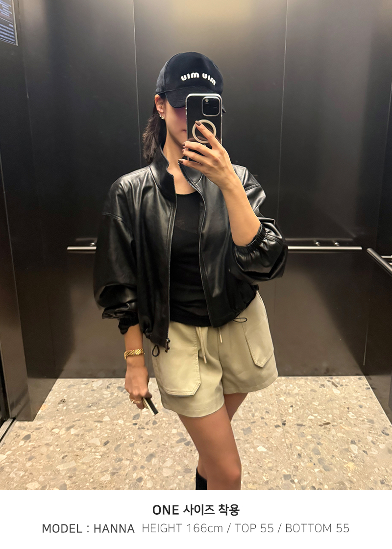 매끈한 텍스처의 레더 소재로 제작된 숏 팬츠입니다.