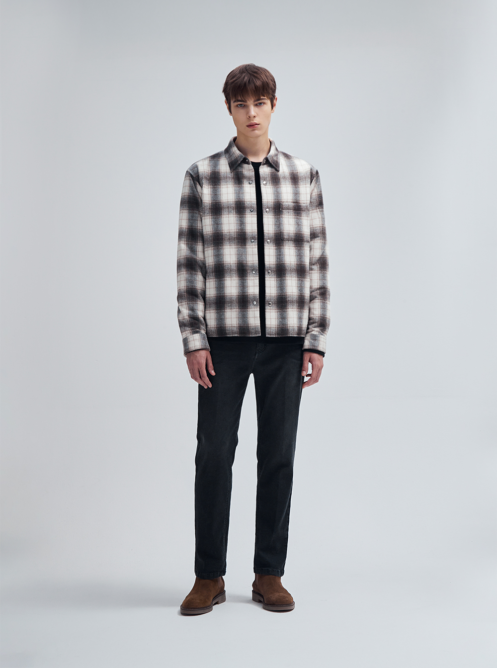 옴브레 체크 패턴이 돋보이는 패디드 셔츠입니다.