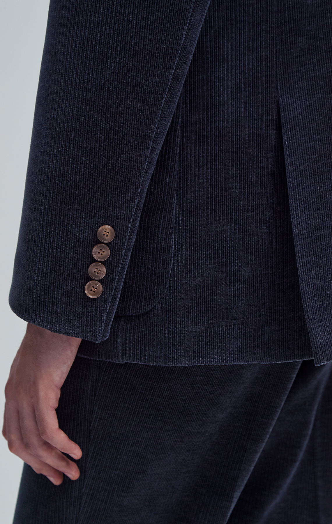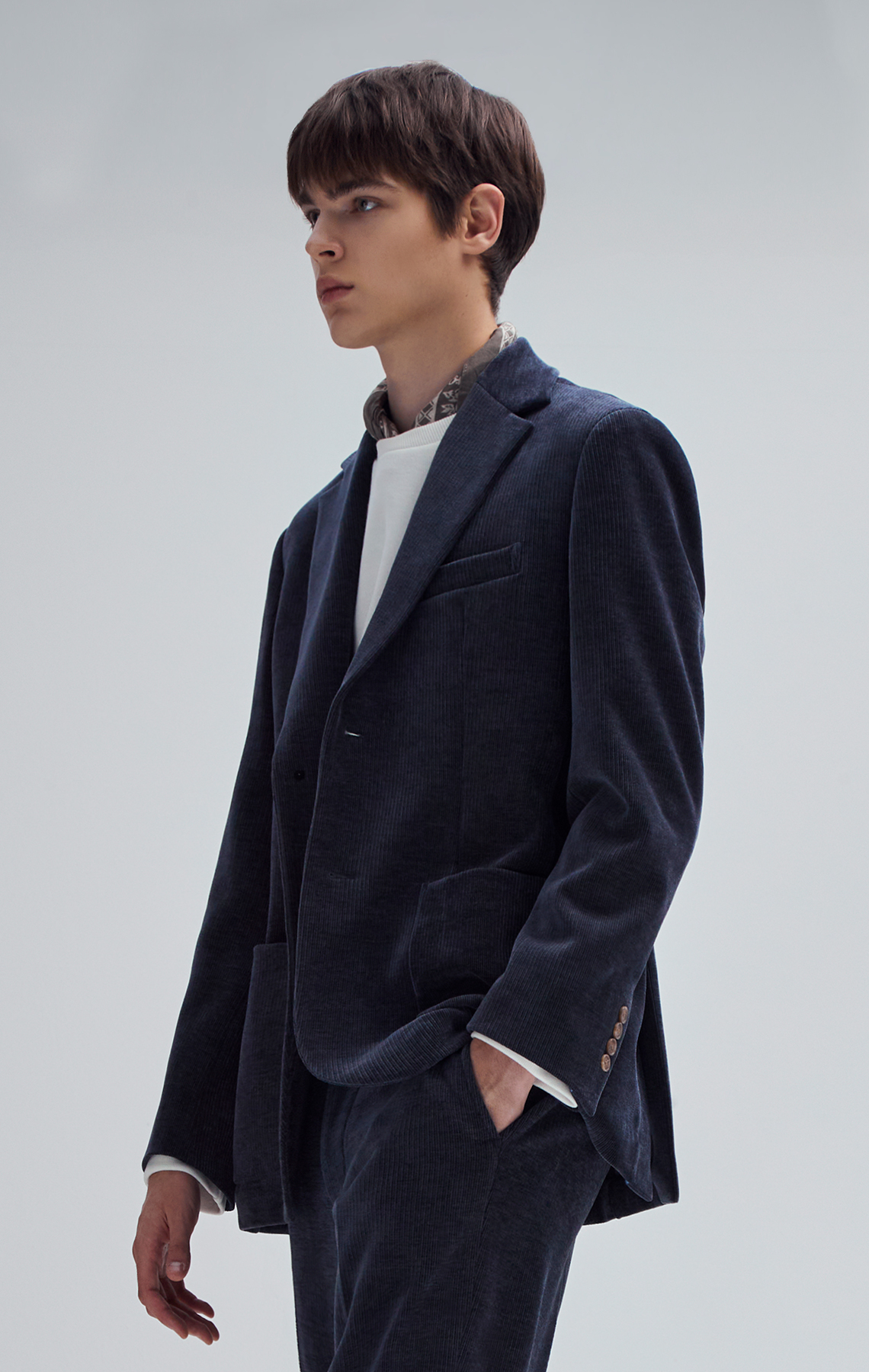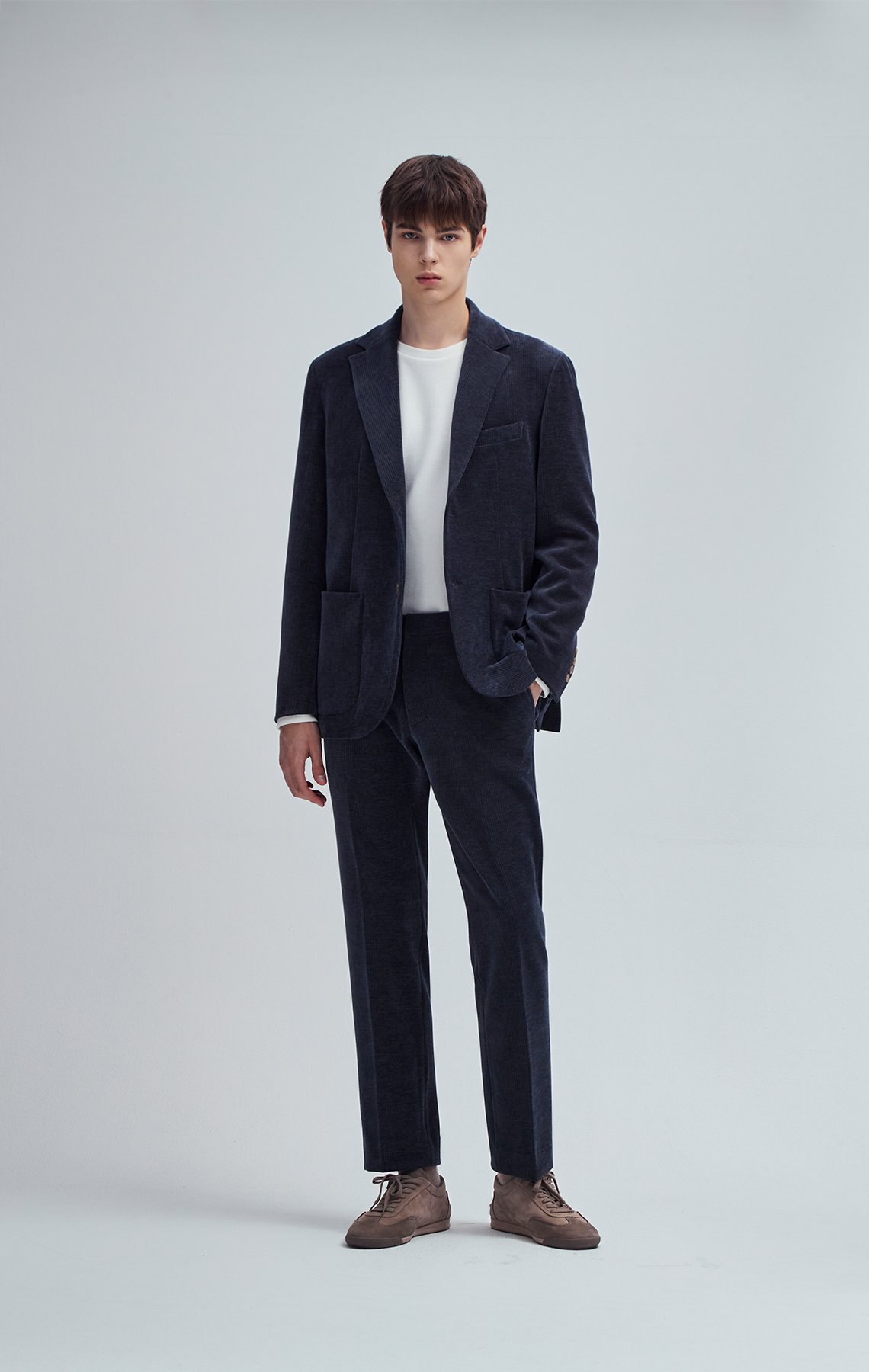 너치드 라펠과 아웃 포켓이 더해진 2버튼 싱글 디자인으로,