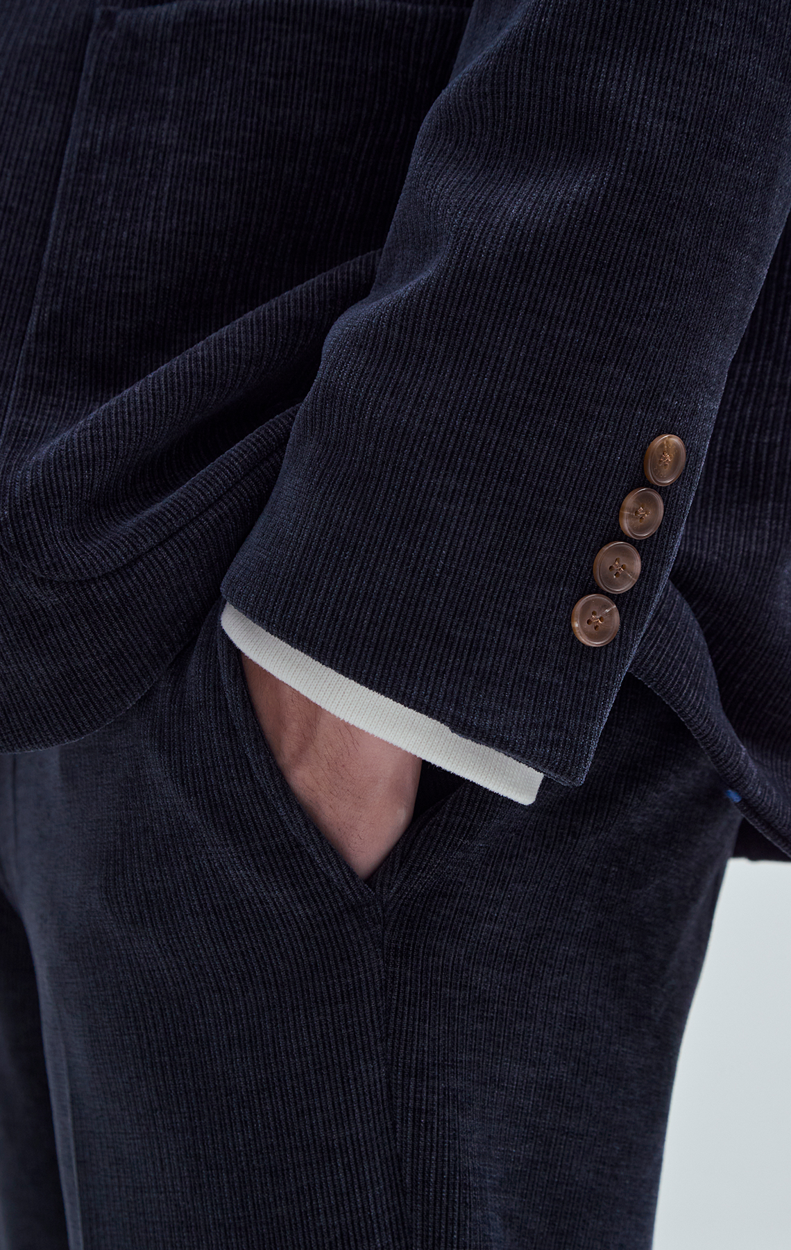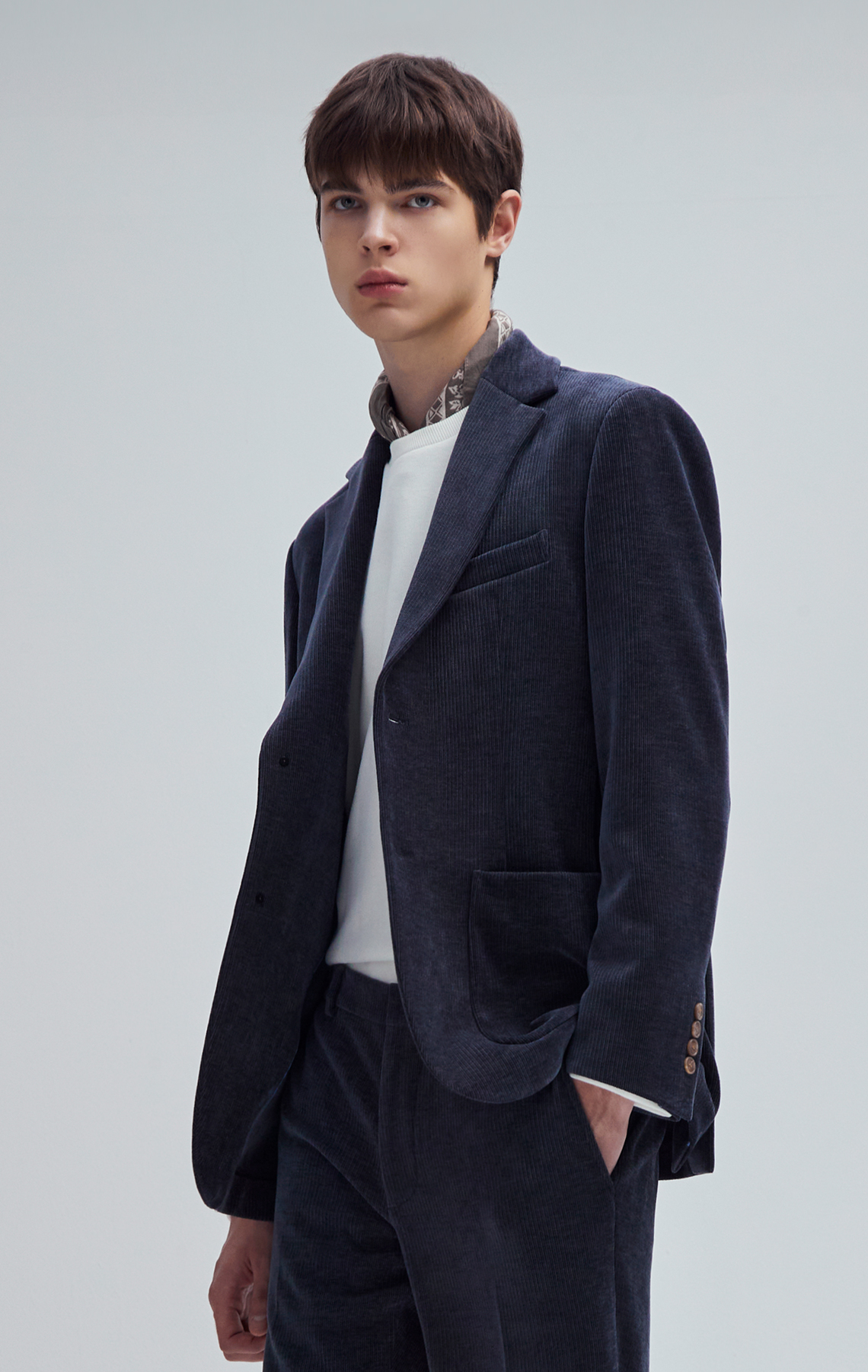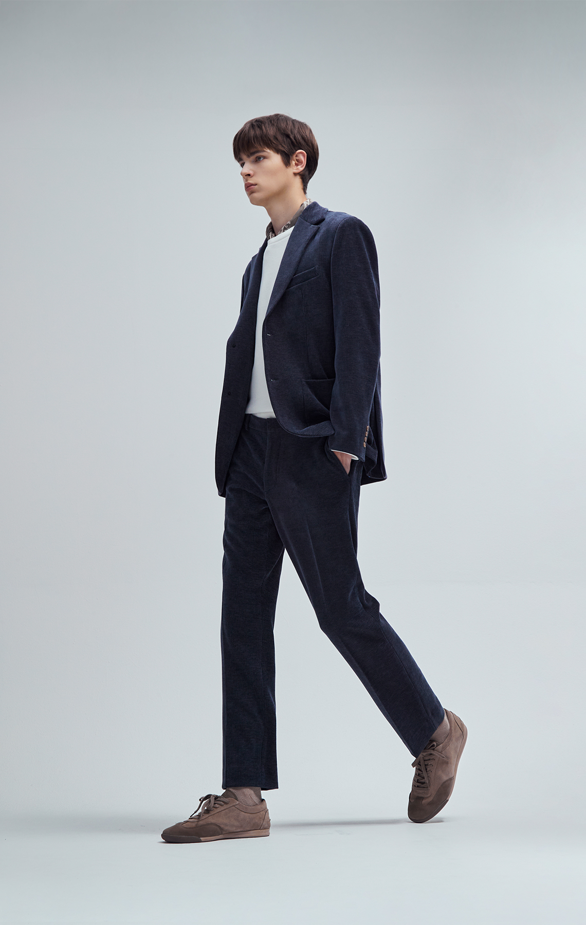 너치드 라펠과 아웃 포켓이 더해진 2버튼 싱글 디자인으로,