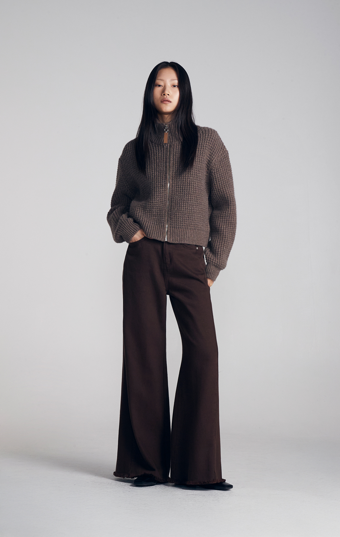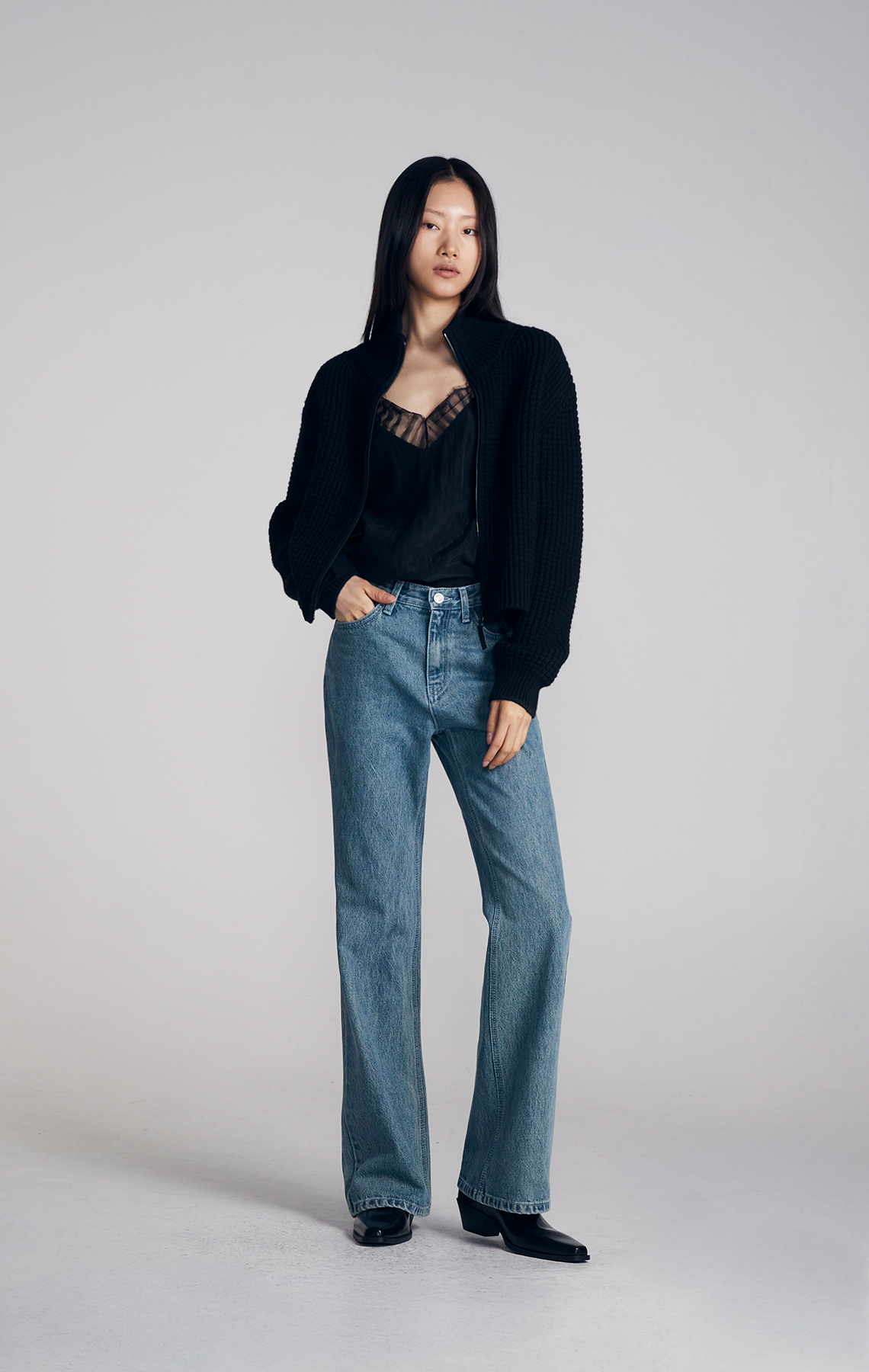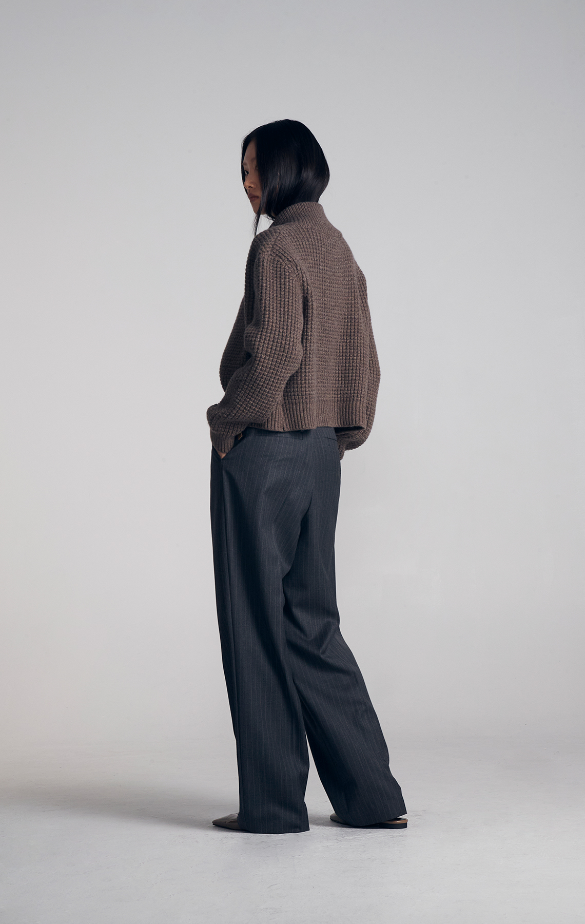 하이넥 디자인과 크롭 기장이 세련된 실루엣을 연출하고,