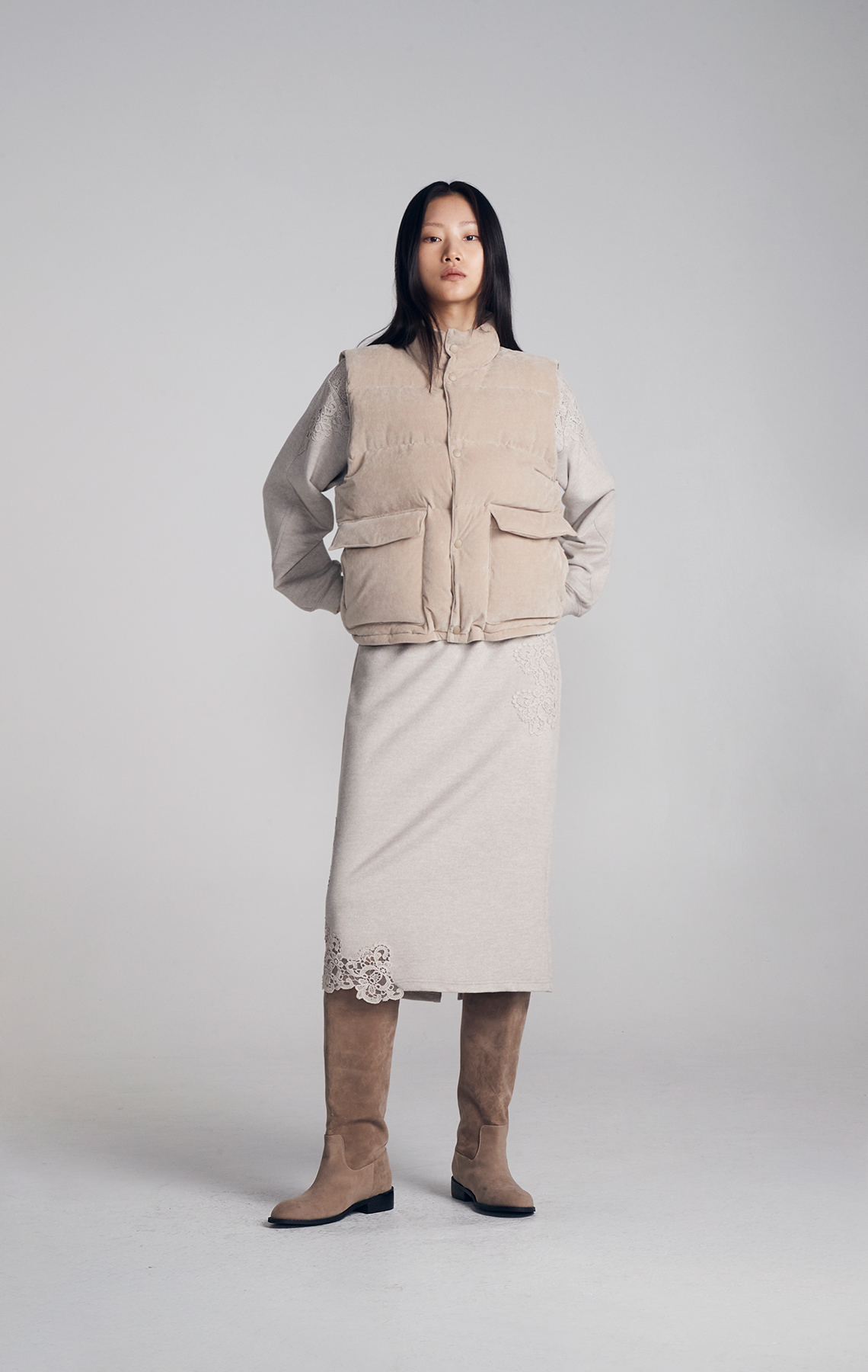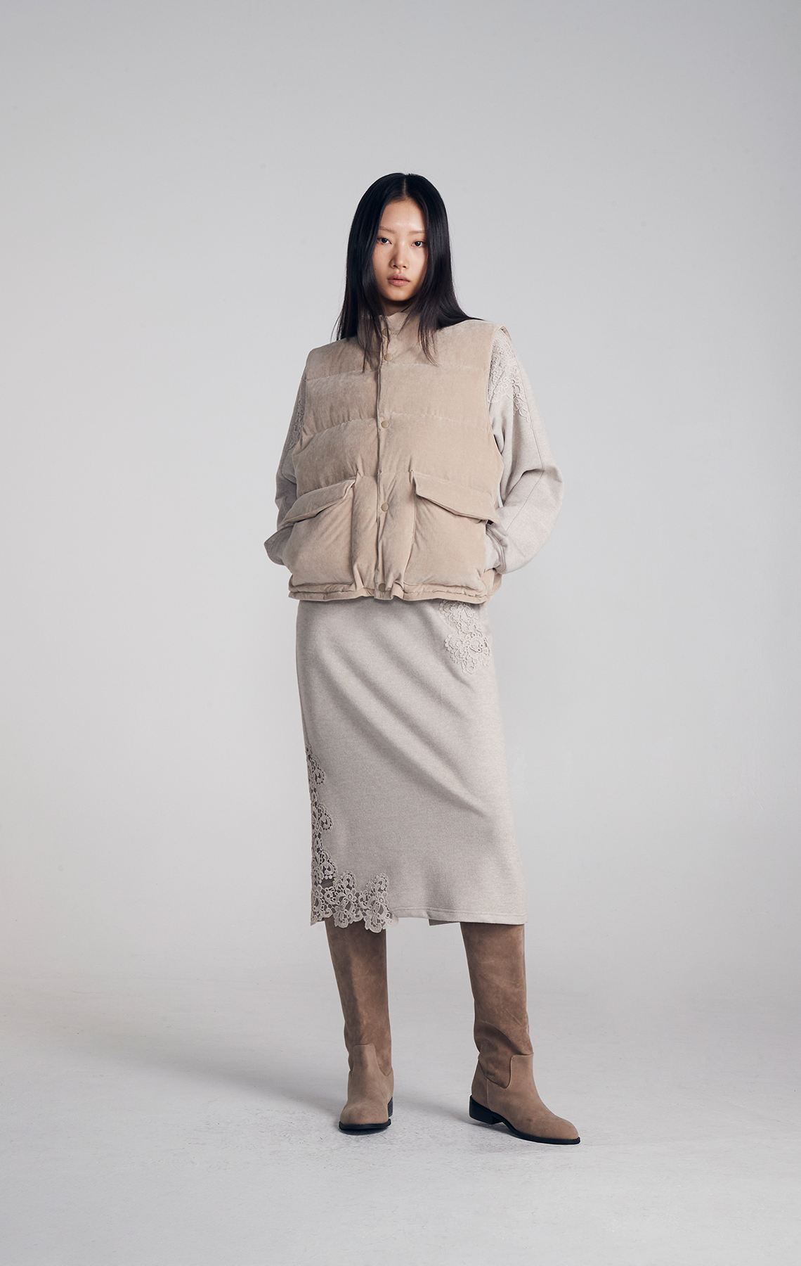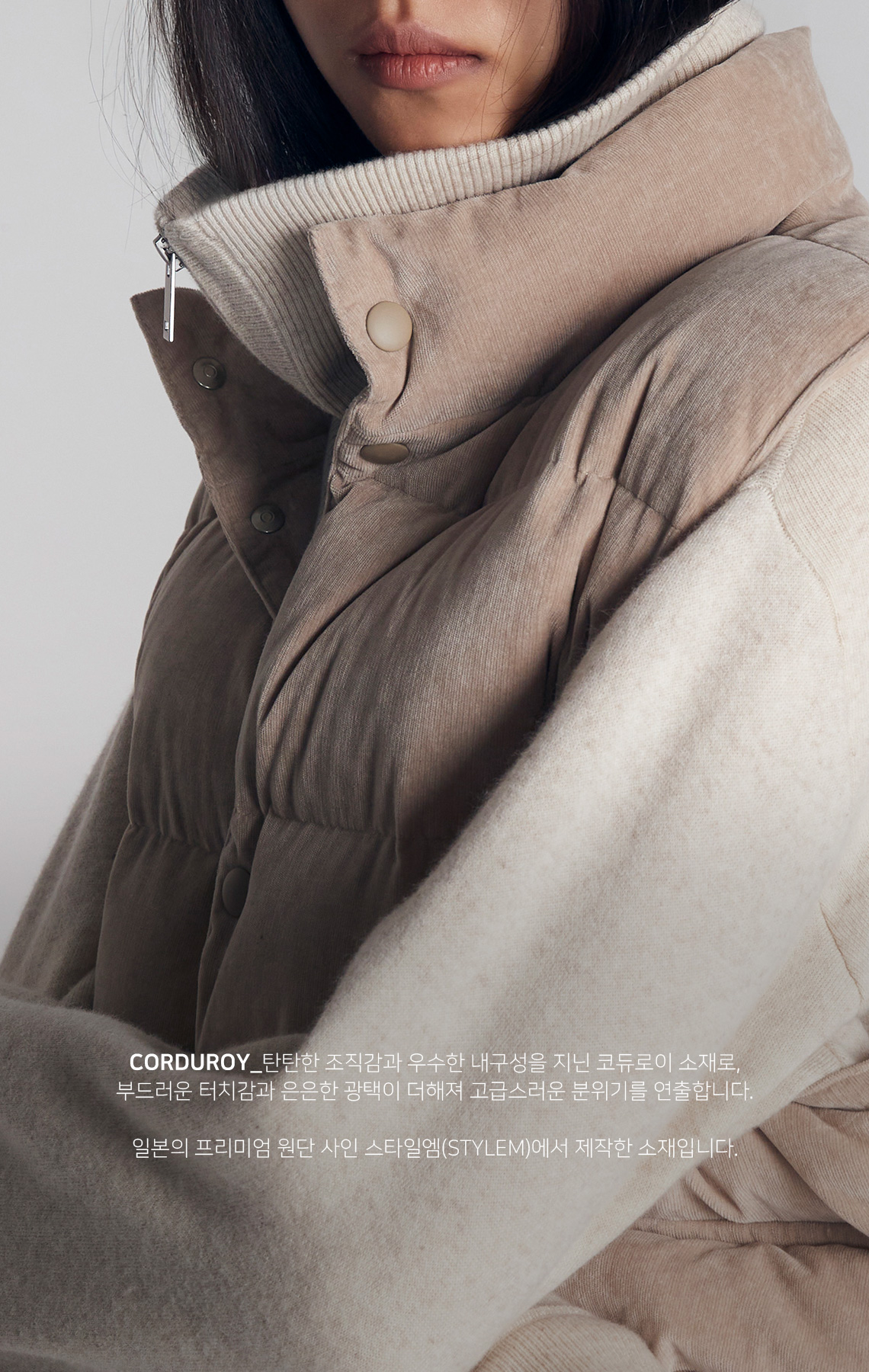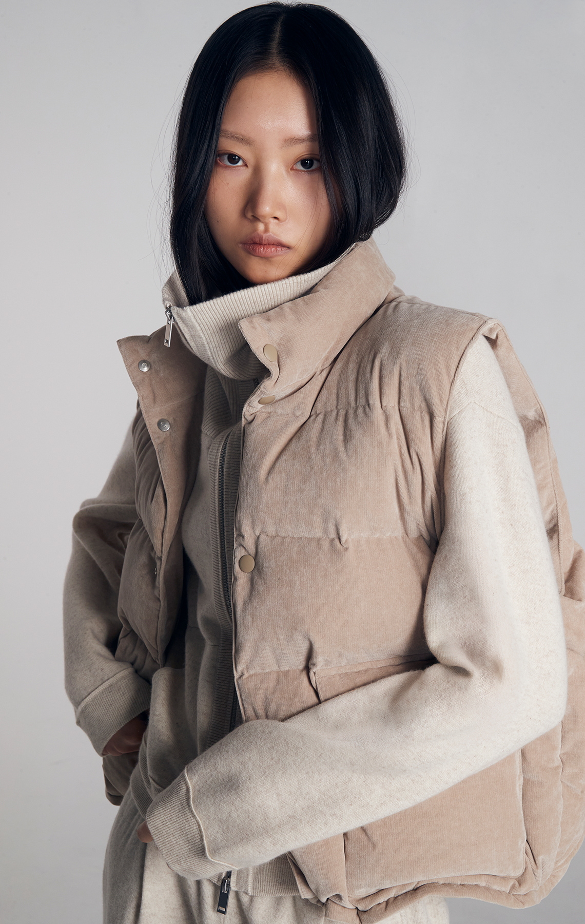 소재 | 겉감 - 폴리에스터 55% 코튼 27% 레이온 15% 폴리우레탄 3% 안감 - 레이온 100% 충전재 - 오리 솜털 80% 오리 깃털 20% 주머니감 - 레이온 100% |