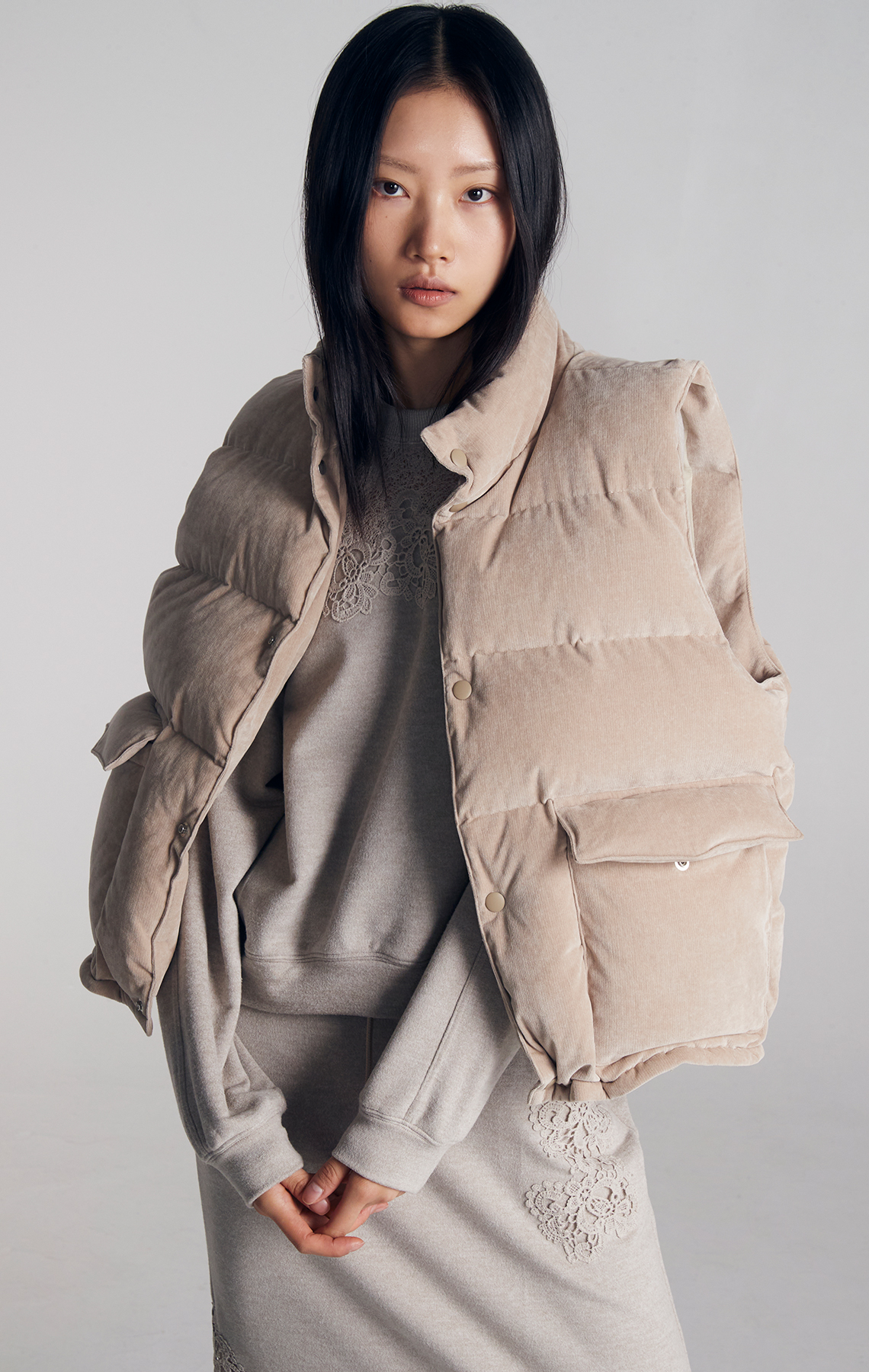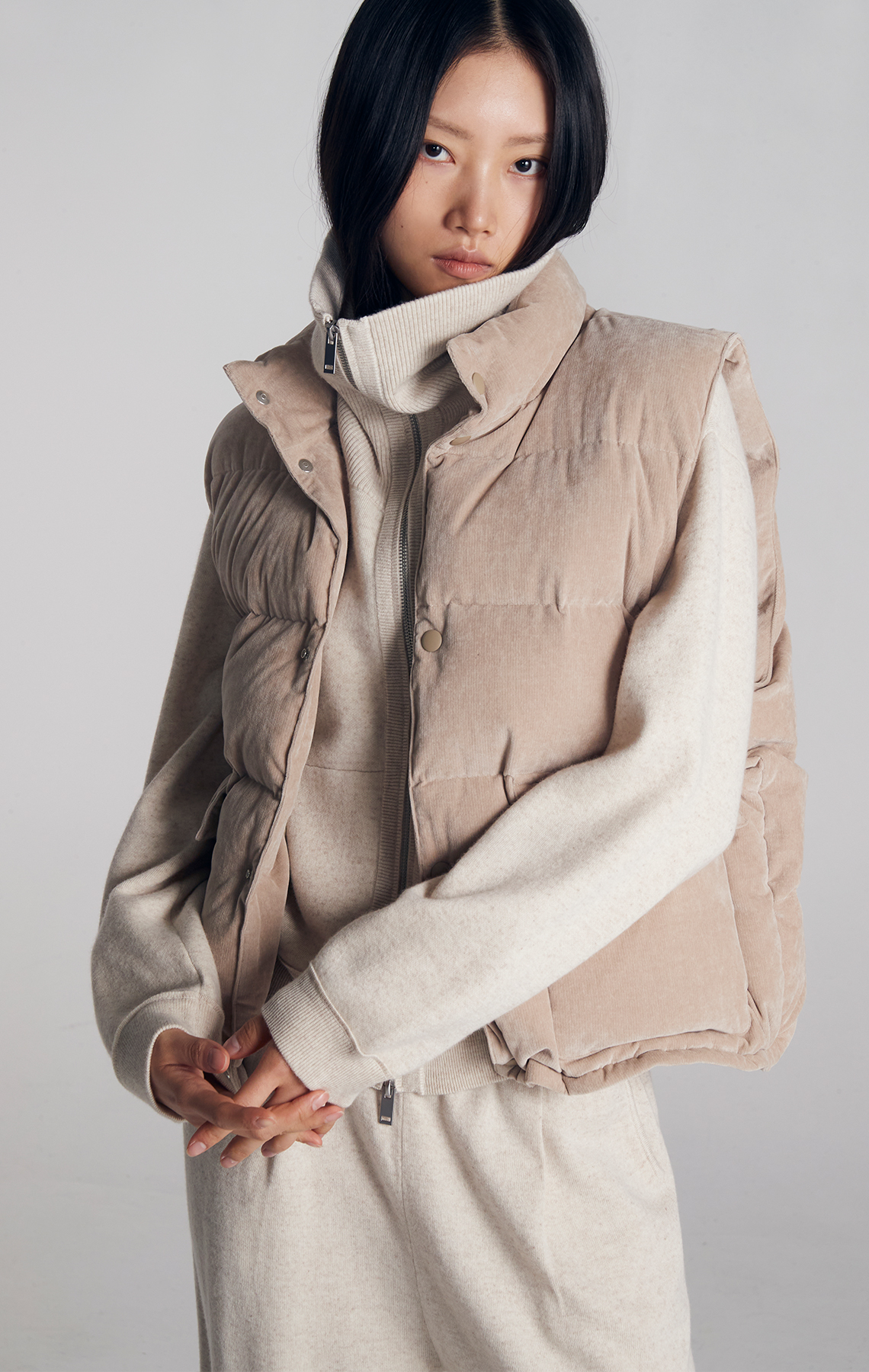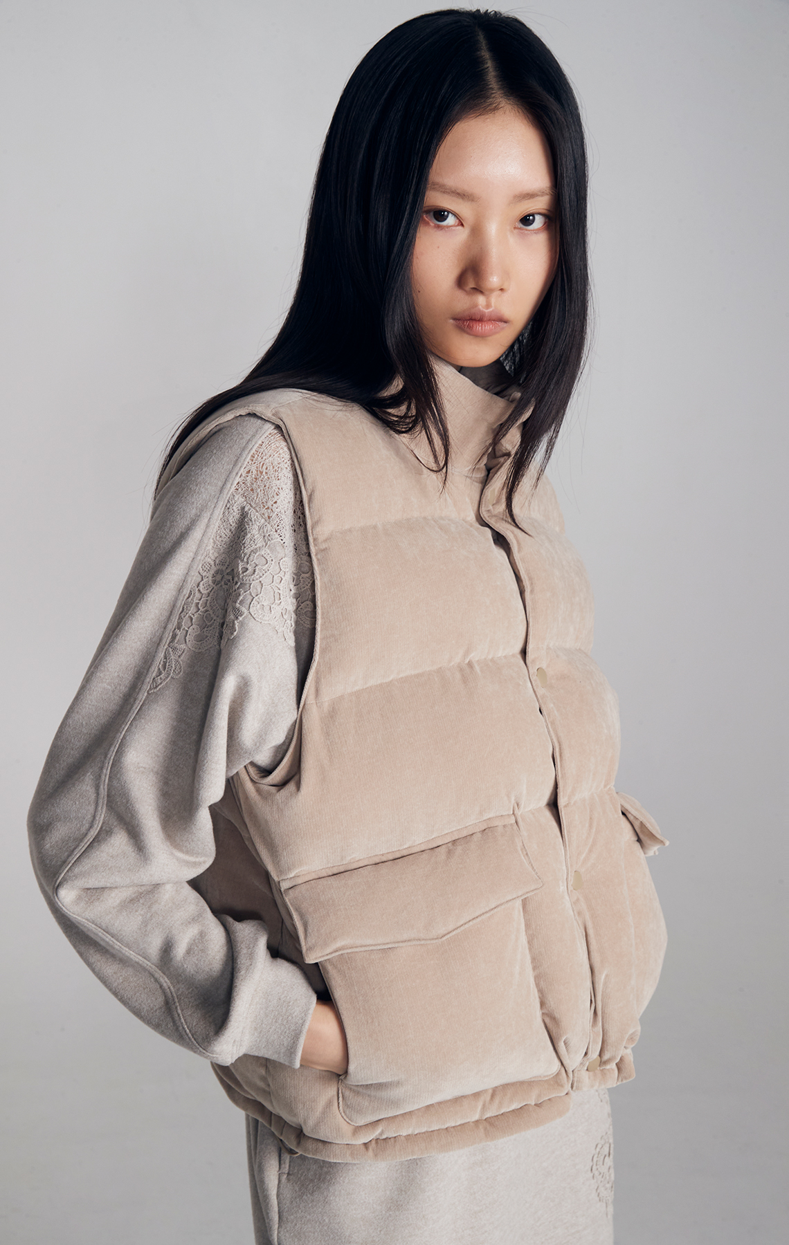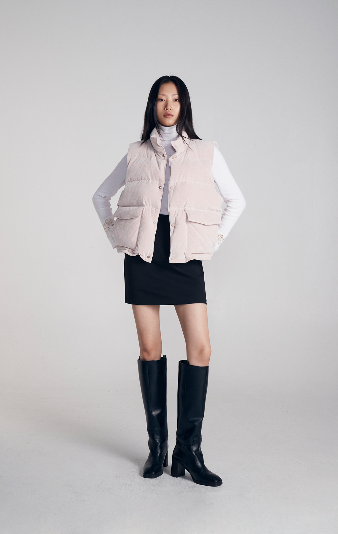 덕 다운 충전재를 사용한 다운 베스트입니다.