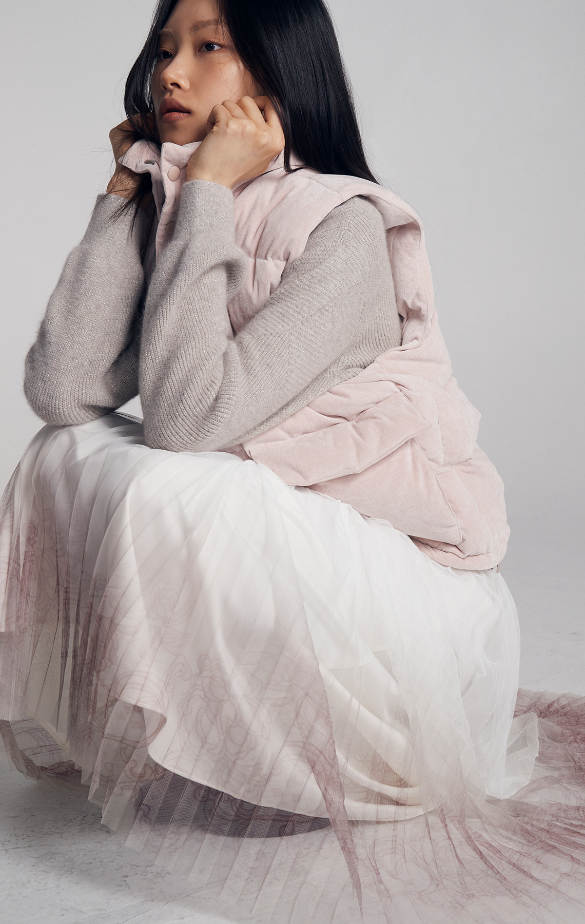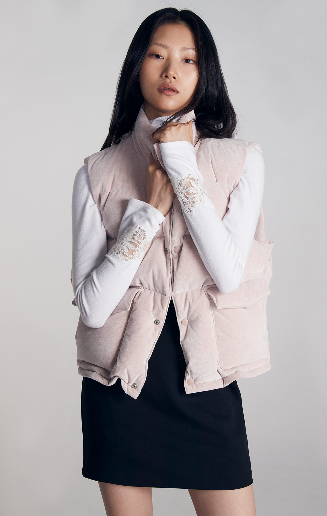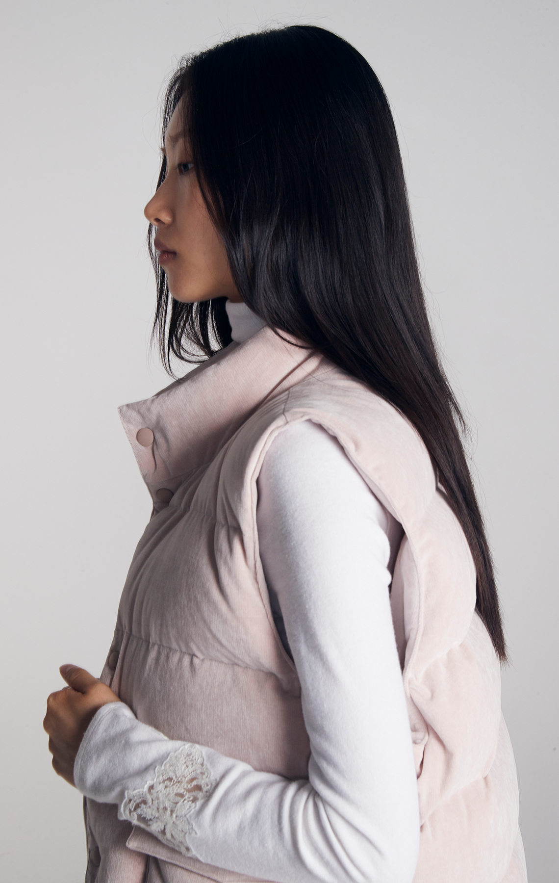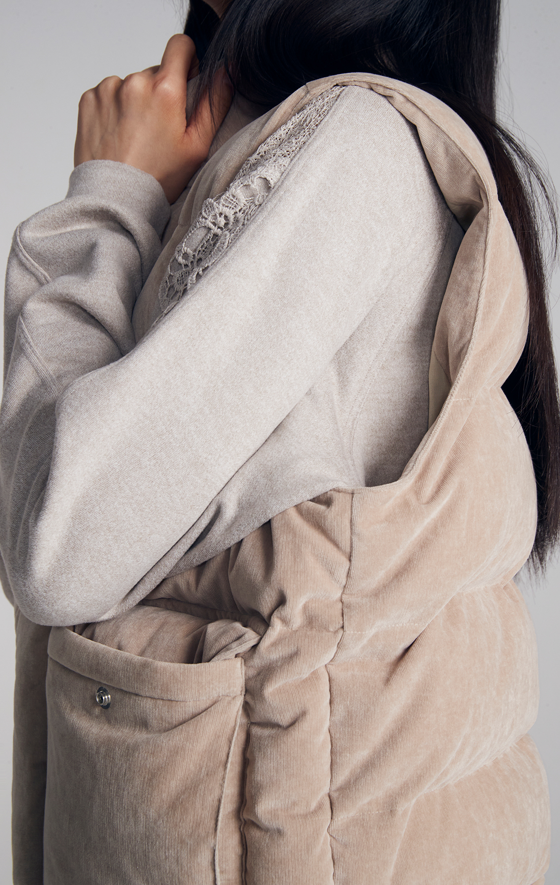 덕 다운 충전재를 사용한 다운 베스트입니다.