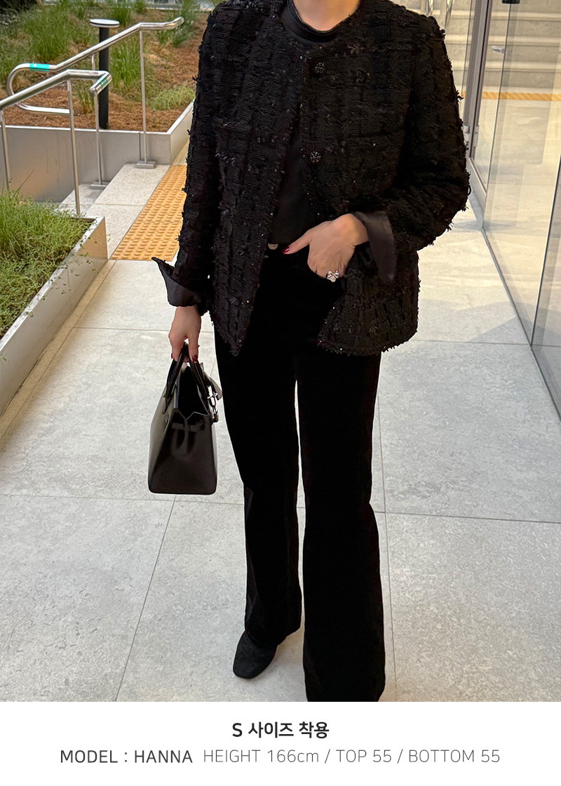 * 트위드 소재의 짜임 특성상 수술 및 올 빠짐 현상이 있을 수 있으며