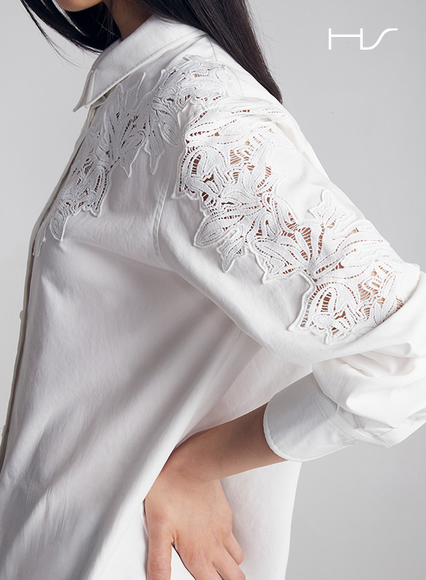 HS만의 섬세한 손길이 담긴 레이스 리브로데 세미 오버핏 셔츠입니다.