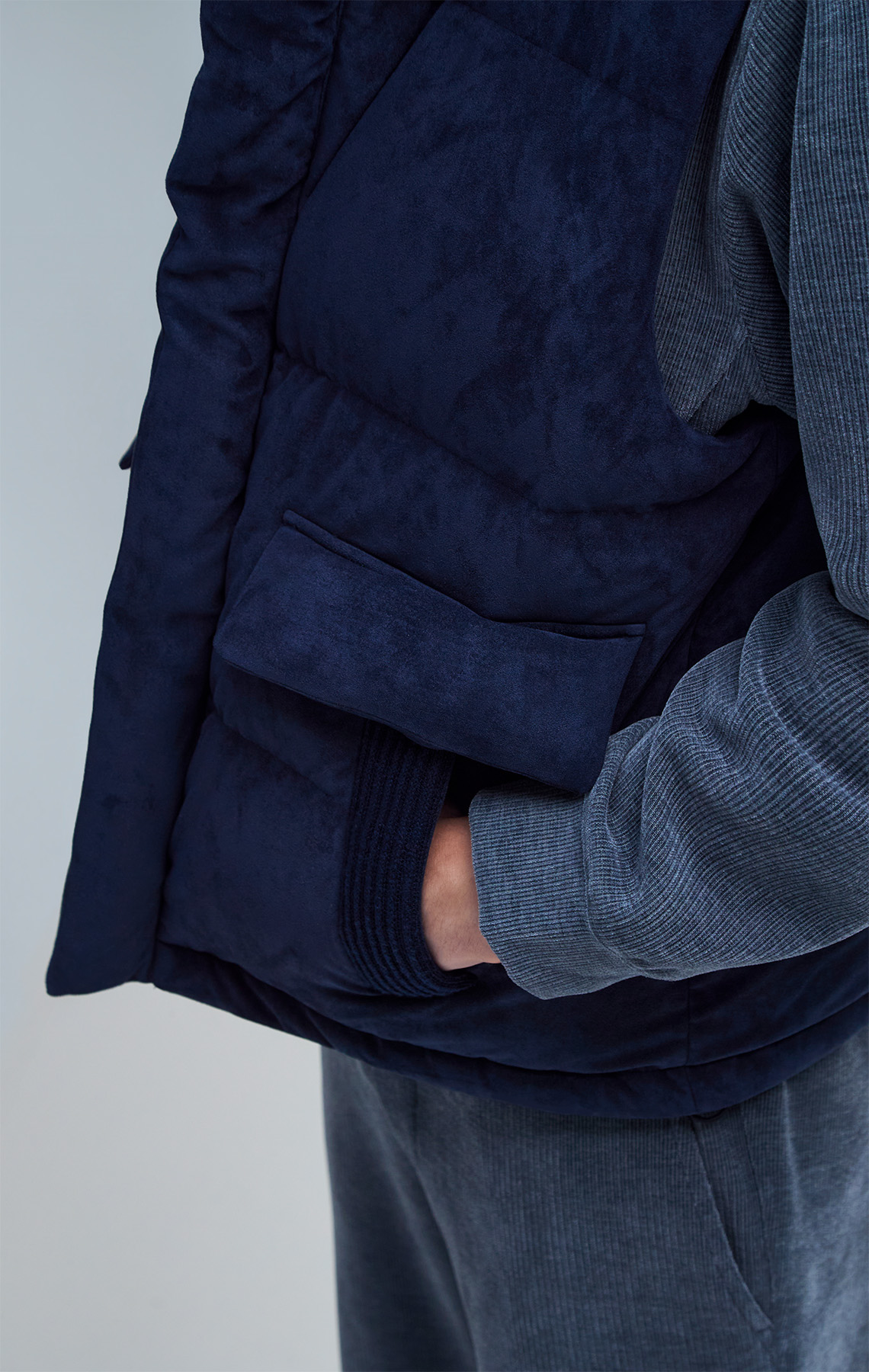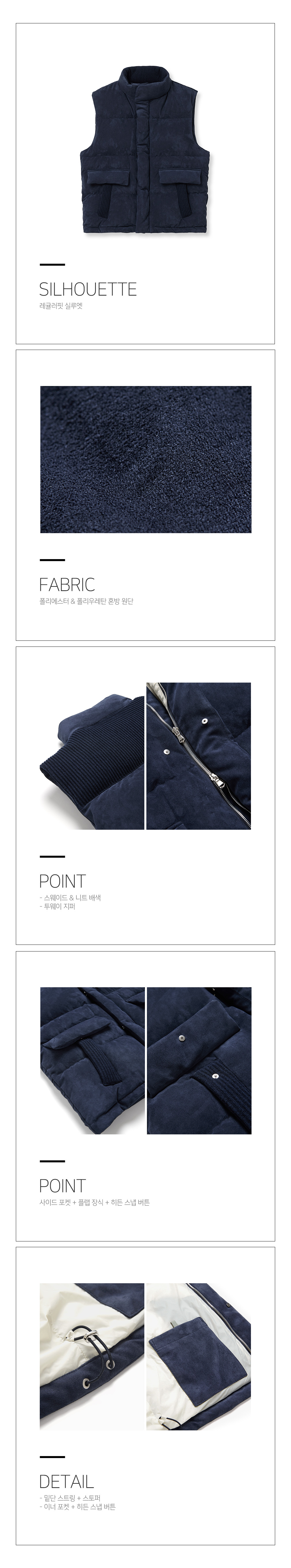 소재 | 겉감 - 폴리에스터 92% 폴리우레탄 8% 배색 - 폴리에스터 97% 폴리우레탄 3% 안감 - 나일론 100% 충전재 - 오리 솜털 80% 오리 깃털 20% 주머니감 - 폴리에스터 100% |