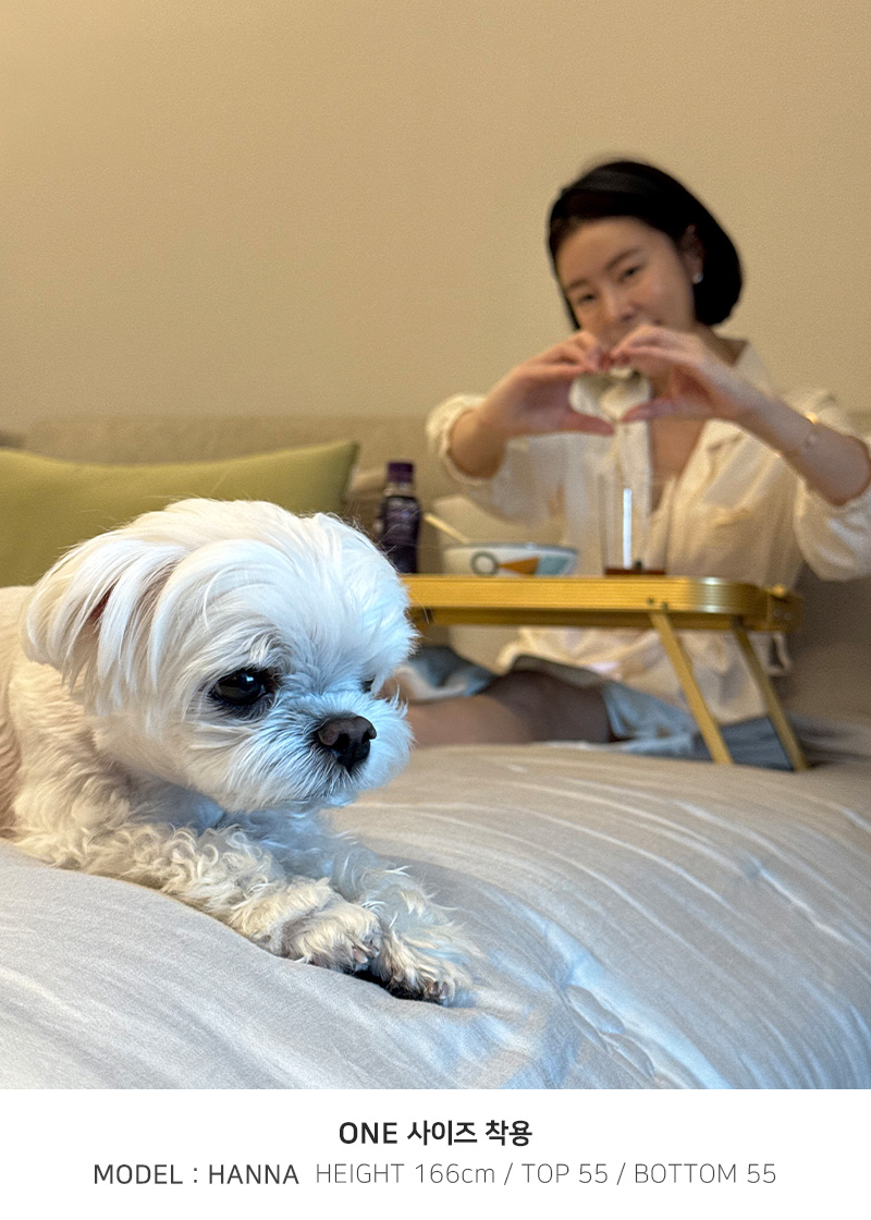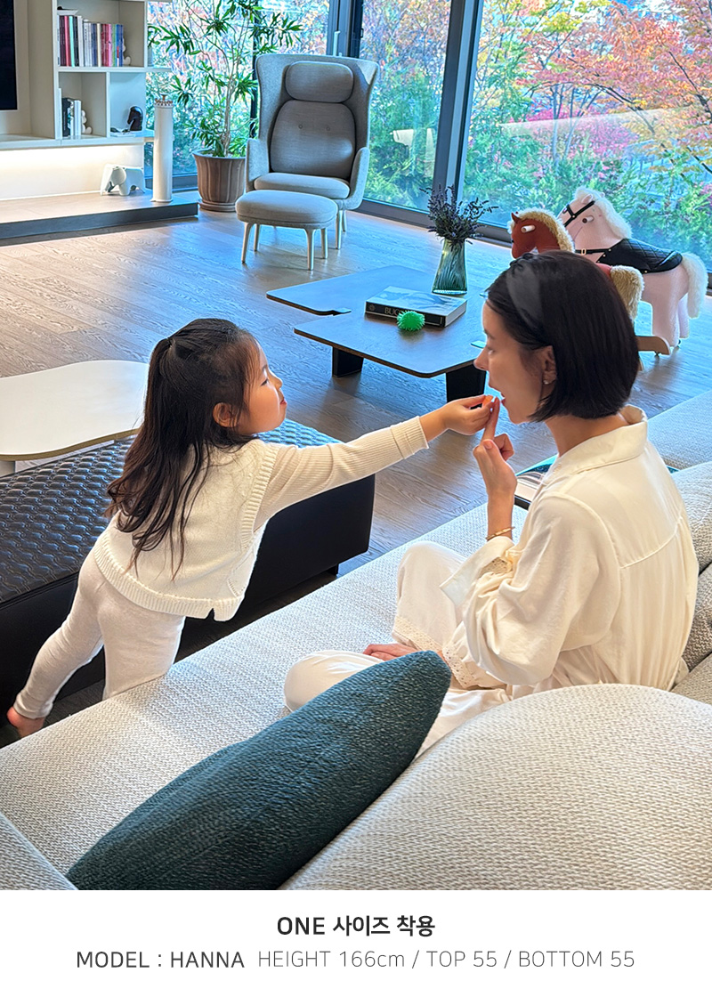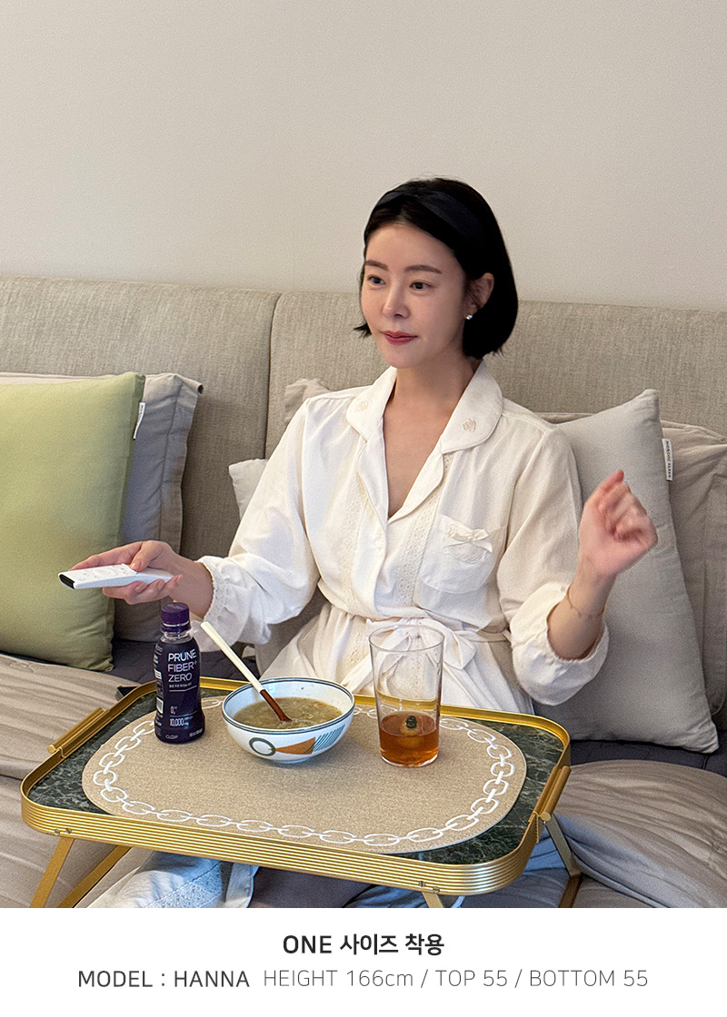 여성스러운 무드가 느껴지는 홈웨어입니다.