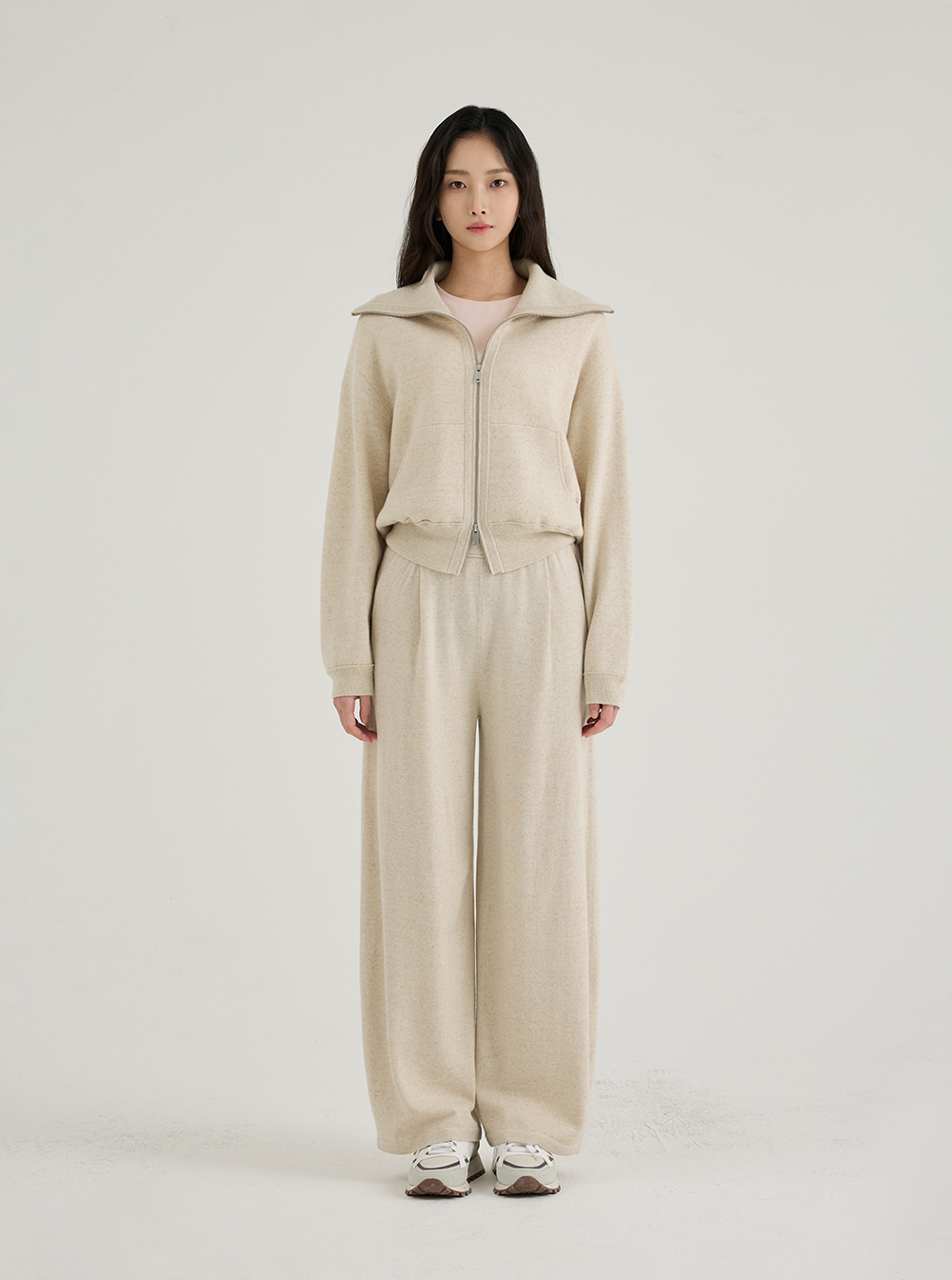 동일 소재의 [울 멜란지 빅카라 집업]과 함께 착용하면