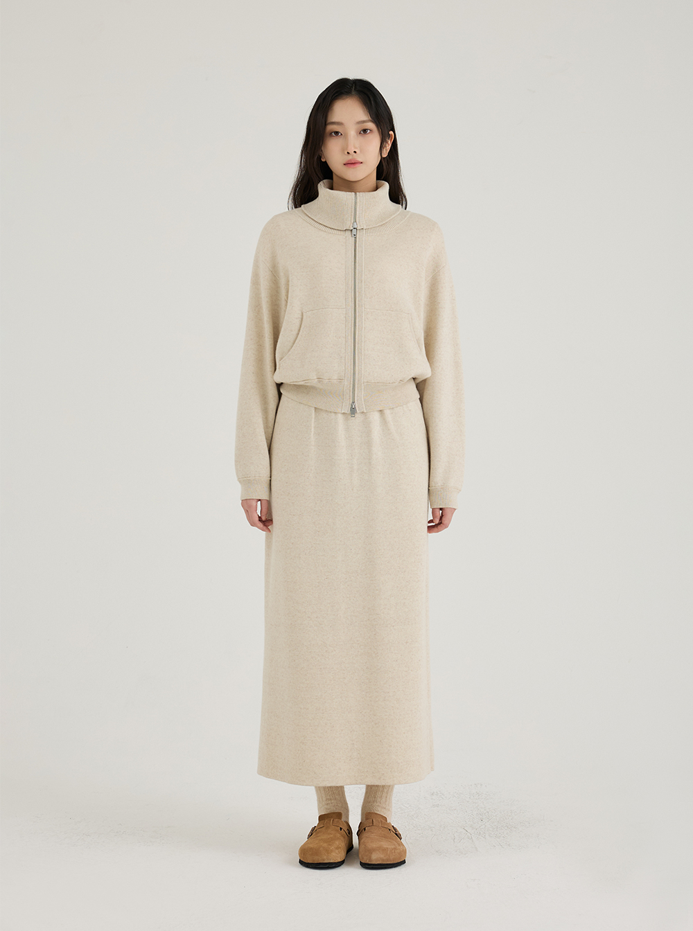 동일 소재의 [울 멜란지 빅카라 집업]와 셋업으로 착용해