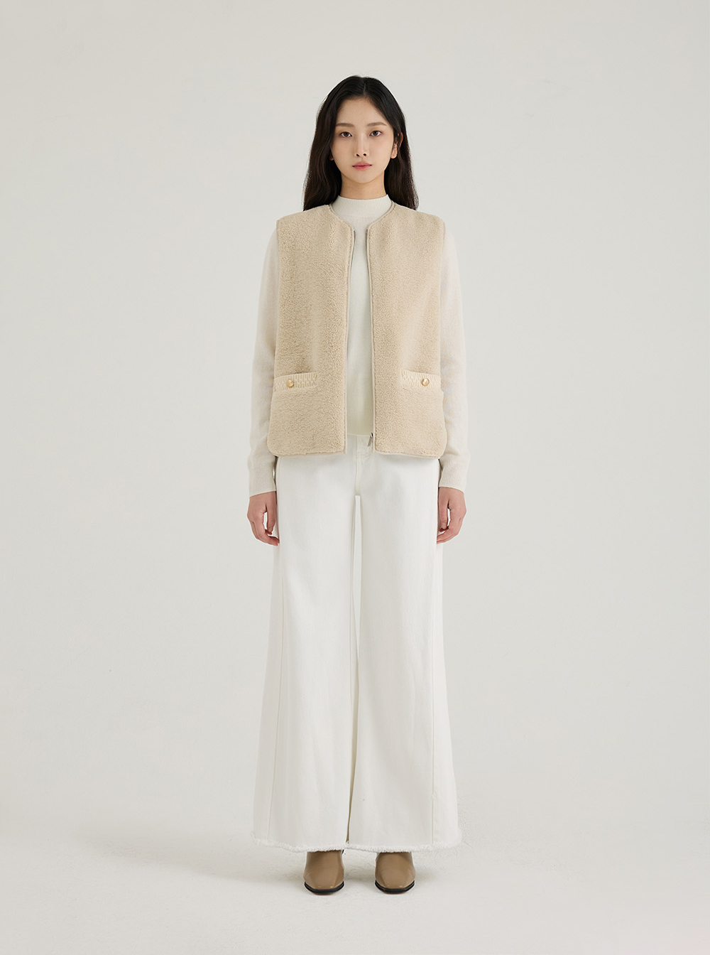 골드 버튼이 더해진 사이드 포켓이 세련된 무드를 완성하며,