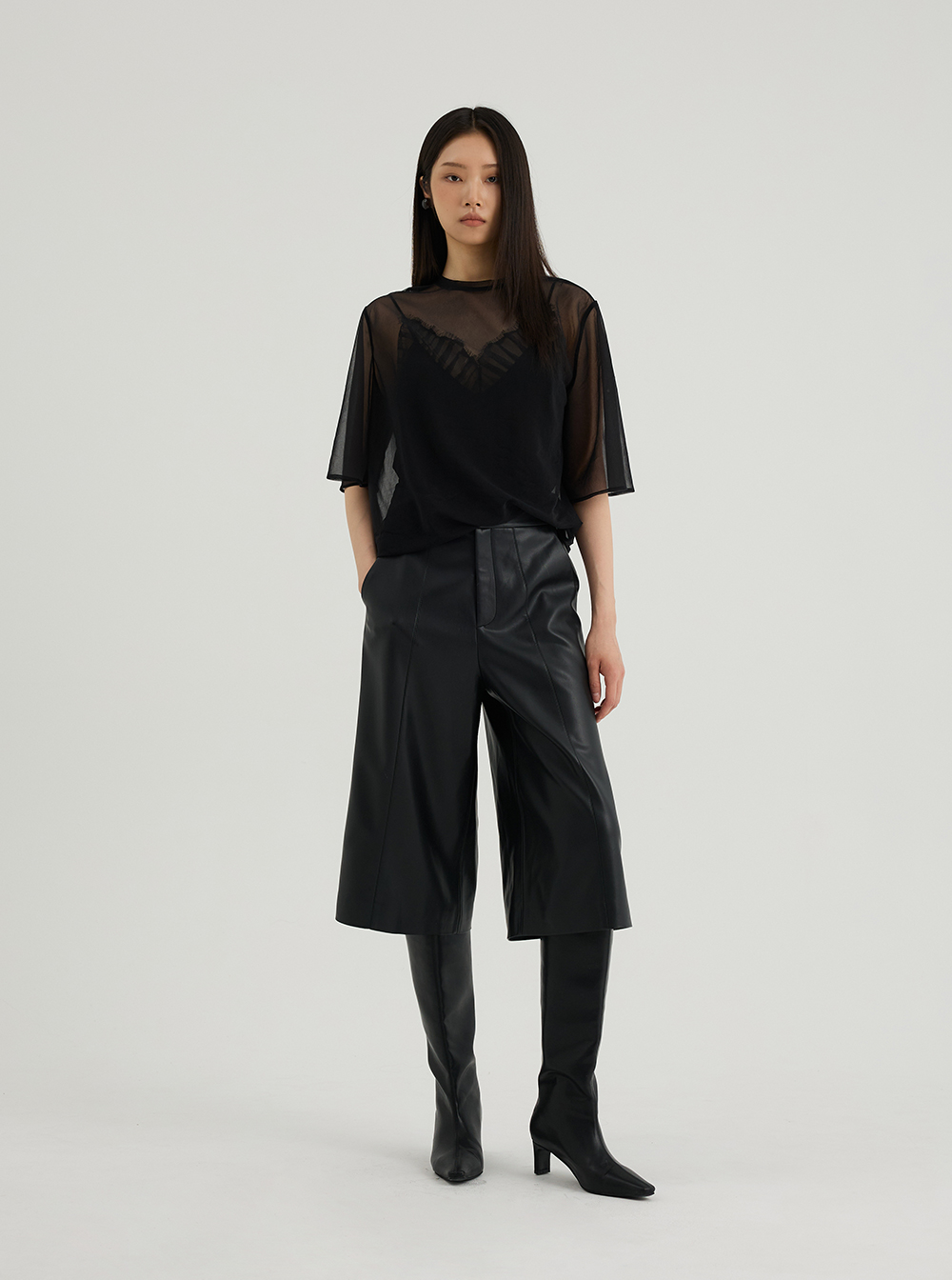 리얼 가죽 질감을 구현한 합성 레더 팬츠입니다.