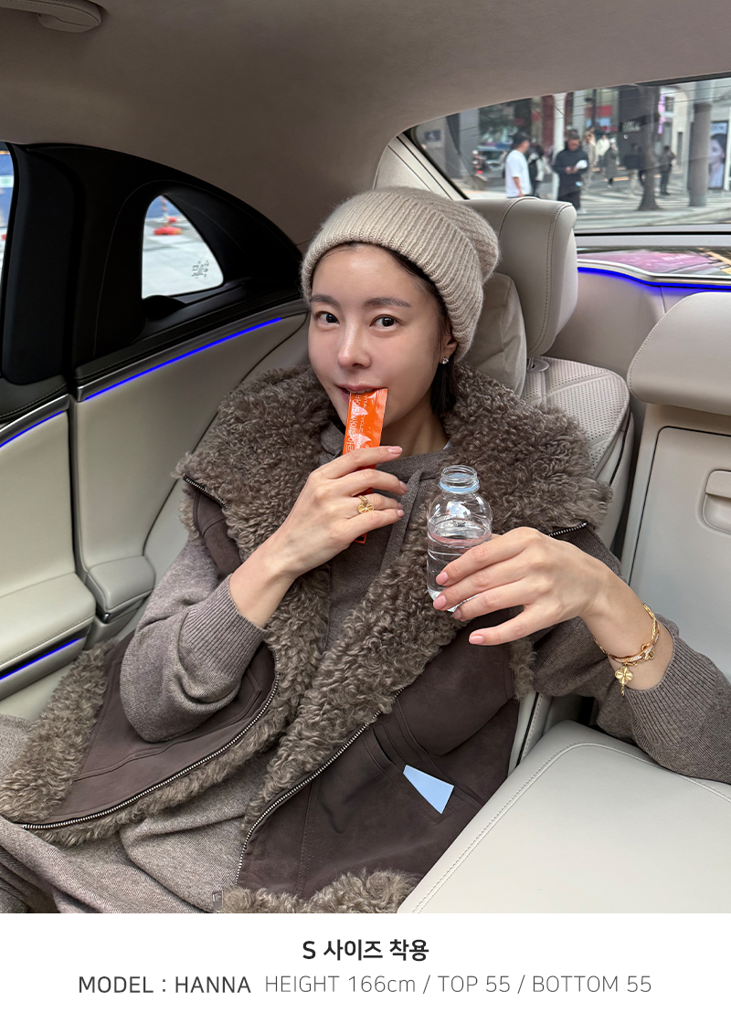 고급 인조 스웨이드와 에코 퍼 패브릭을 매치한 베스트로,