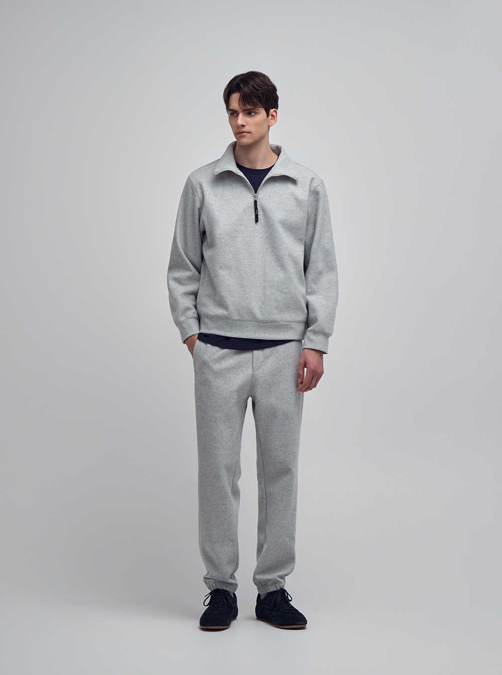 하프 집업 디자인은 스탠드 또는 카라 형태로 스타일링할 수 있으며,