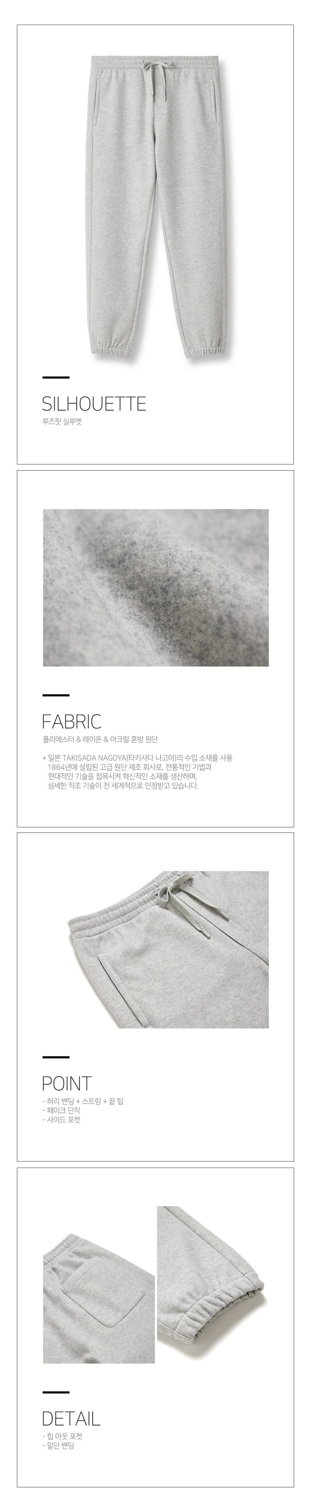 기능성 저지 소재로 제작된 루즈핏 조거 팬츠로,