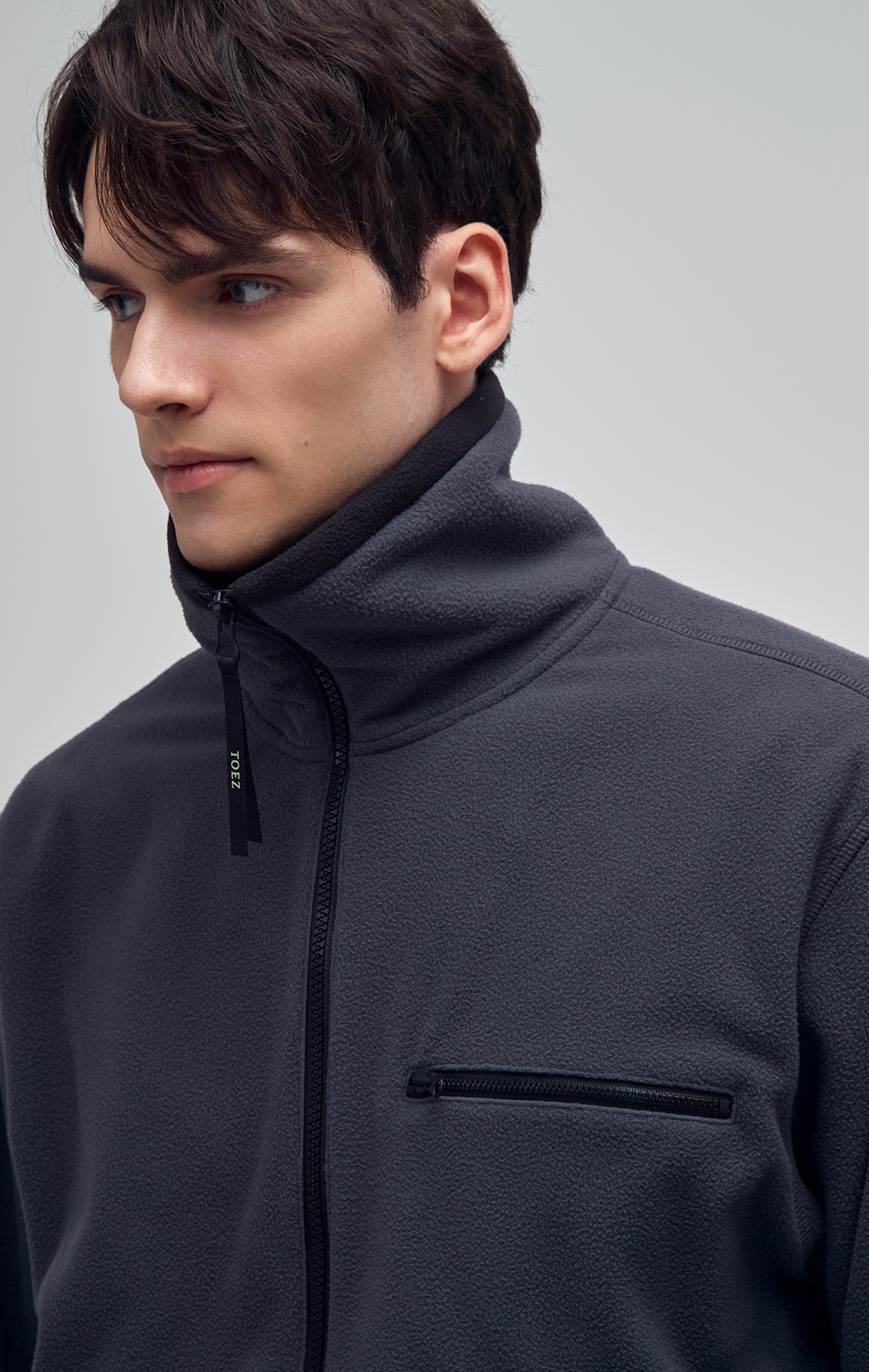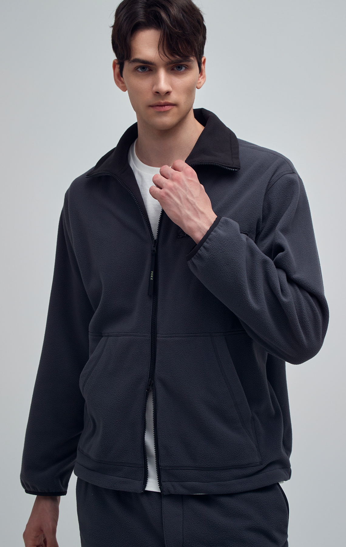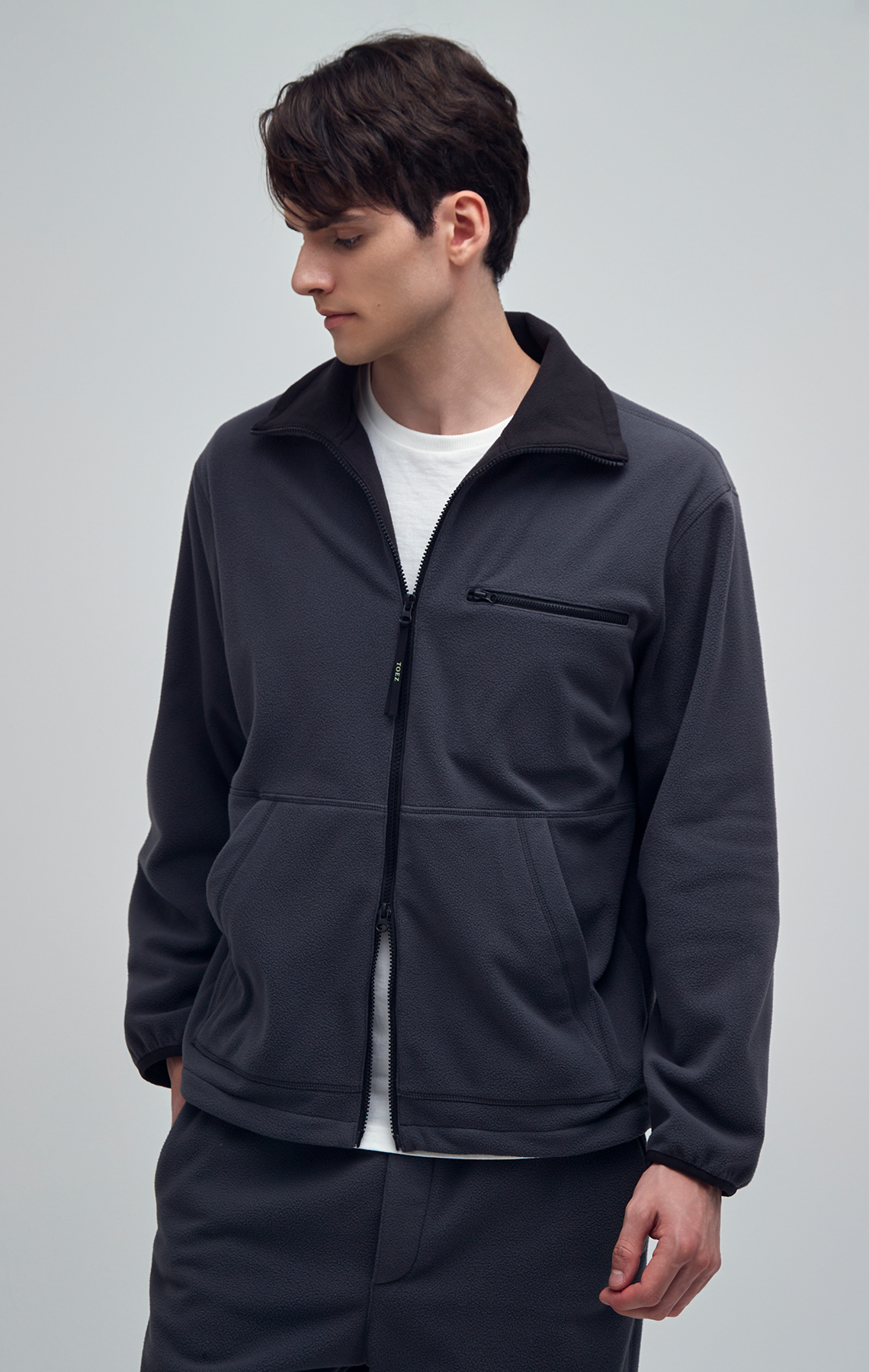리사이클 양털 소재로 제작된 루즈핏 풀 집업 아우터로