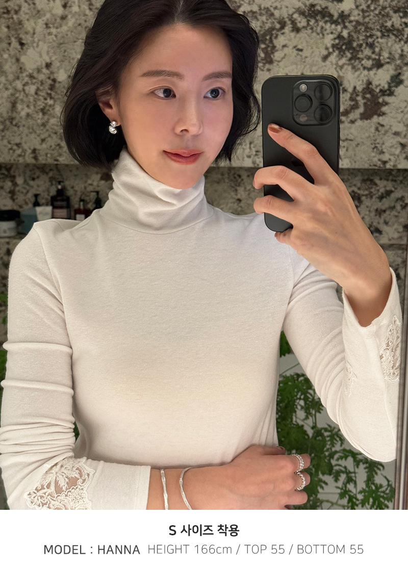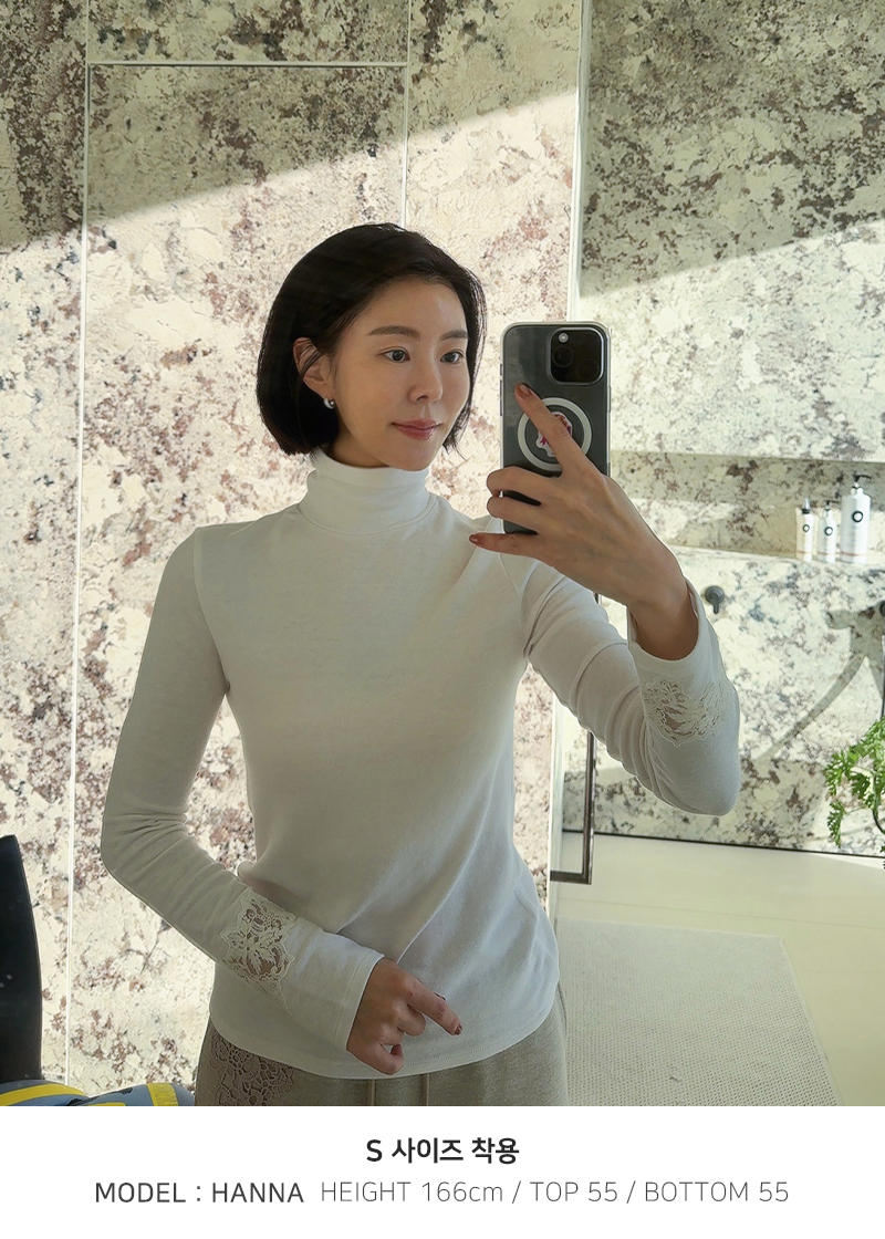 소매 밑단엔 비대칭 형태로 레이스 패턴을 따라