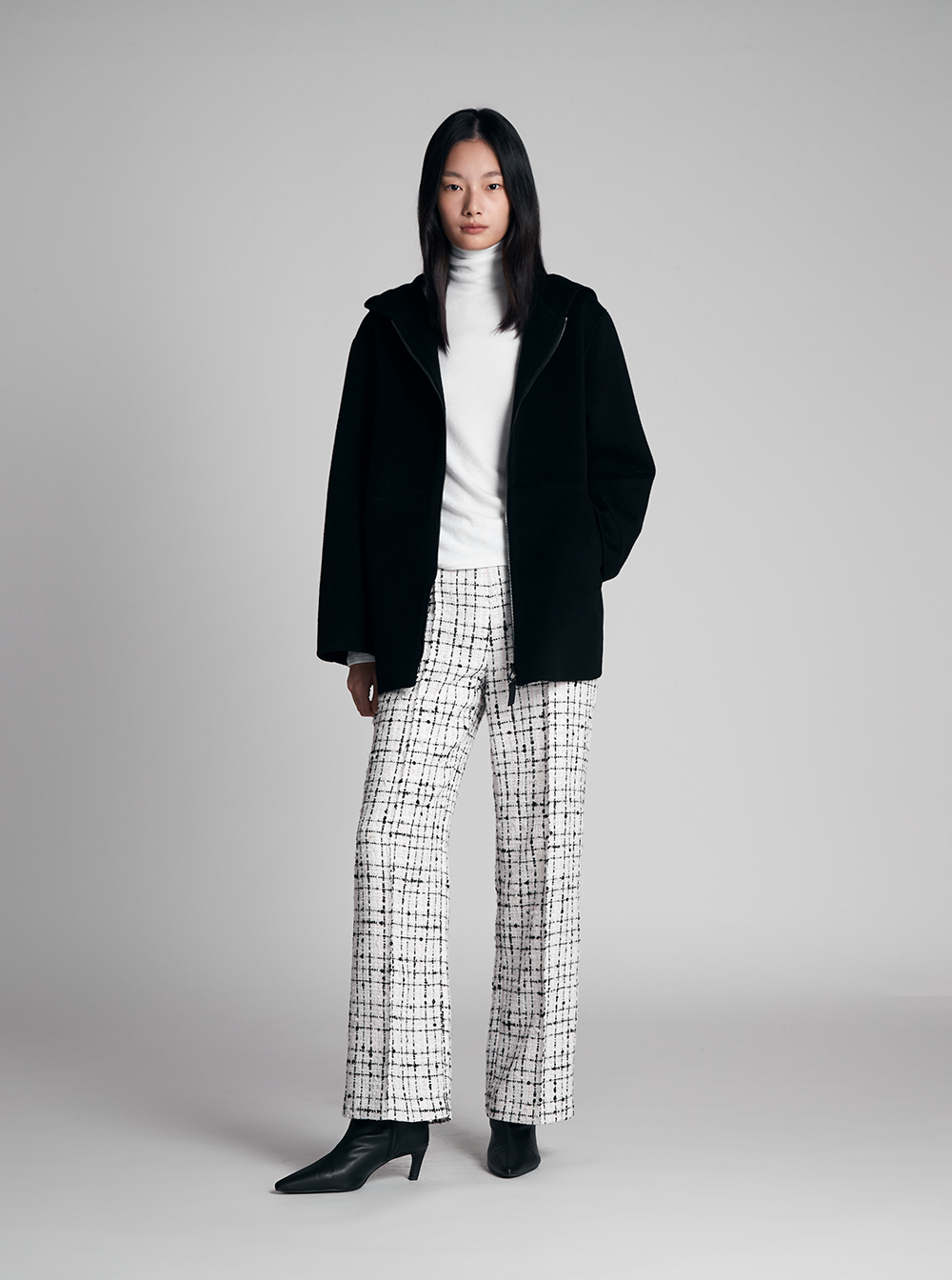 캐시미어가 블렌딩된 더블 페이스 소재로 가볍고 견고하며,