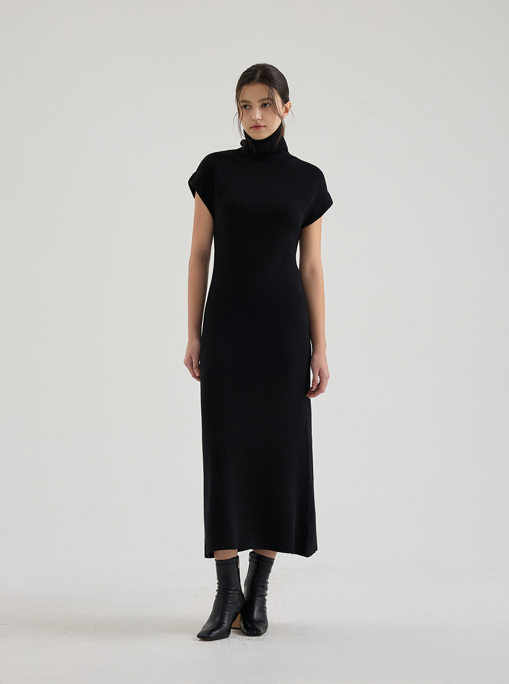 세련된 분위기를 연출하는 슬리브리스 니트 원피스입니다.