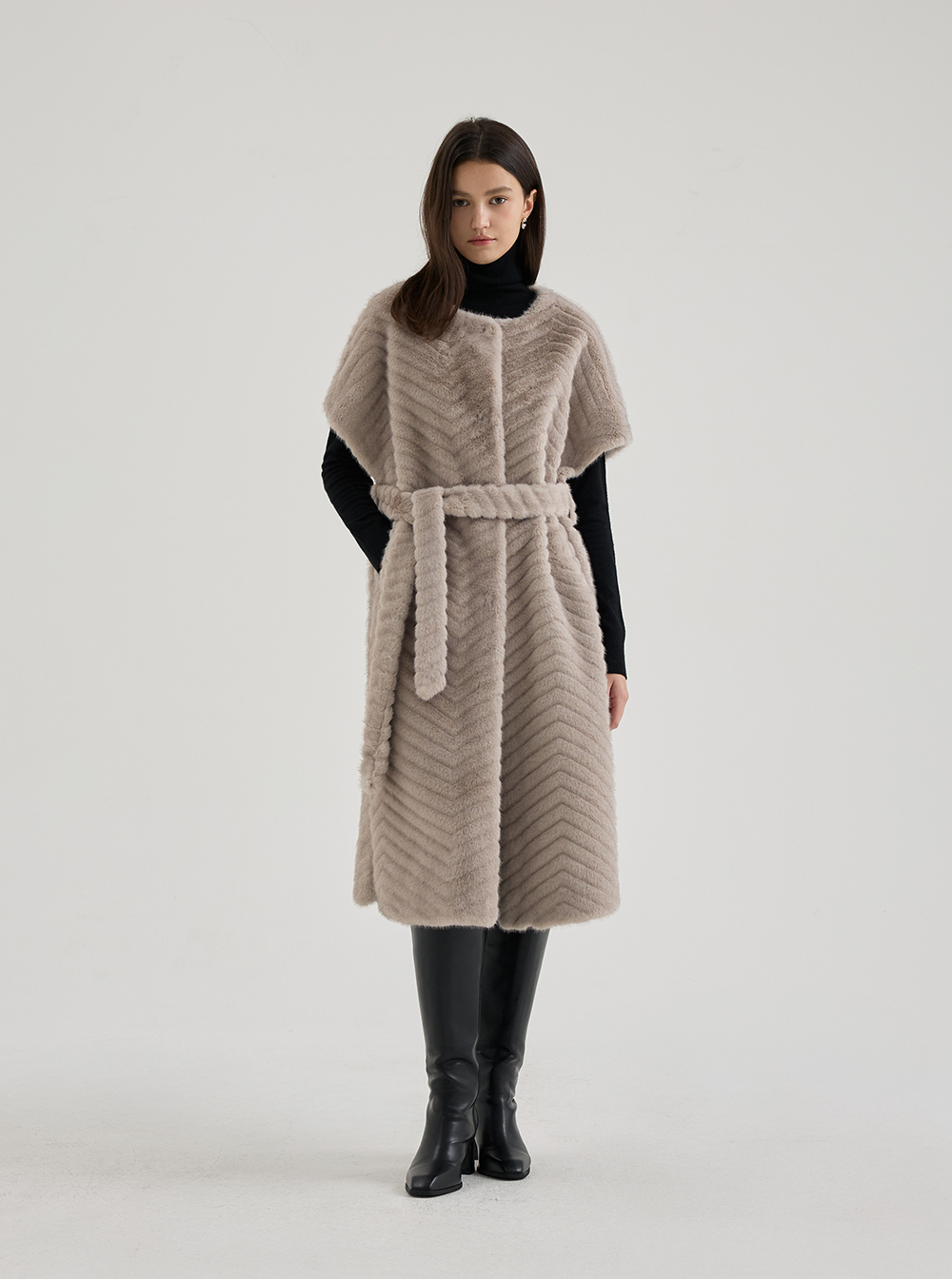 부드럽고 풍성한 에코퍼 소재로 완성된 롱 베스트입니다.