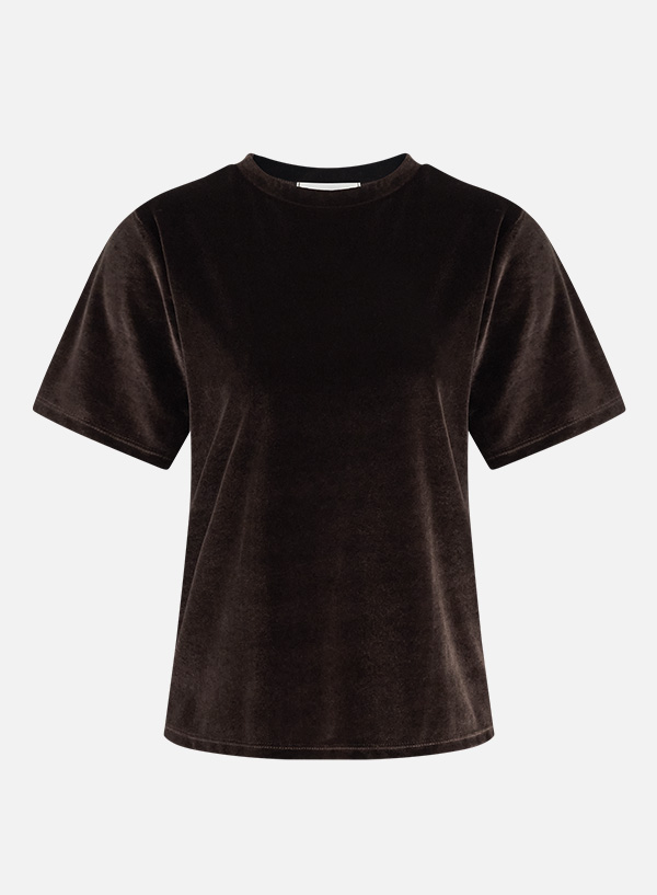 은은한 광택의 벨벳 텍스처가 돋보이는 하프 티셔츠입니다.