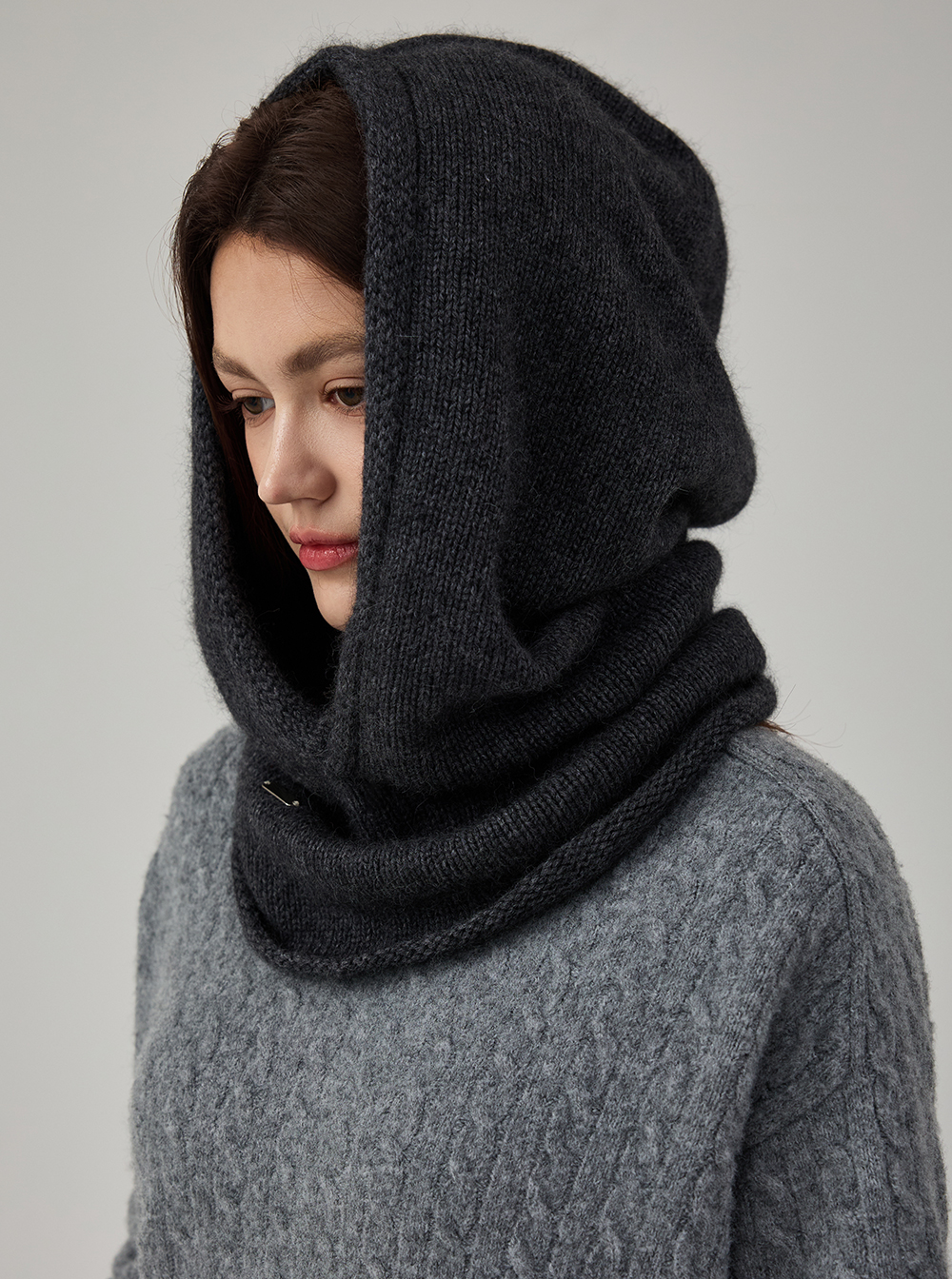 부드러운 니트 텍스처가 얼굴과 넥을 포근하게 감싸주며,