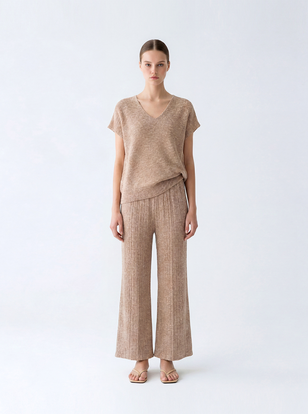 유연하면서도 입체적인 텍스처가 돋보이는 팬츠입니다.